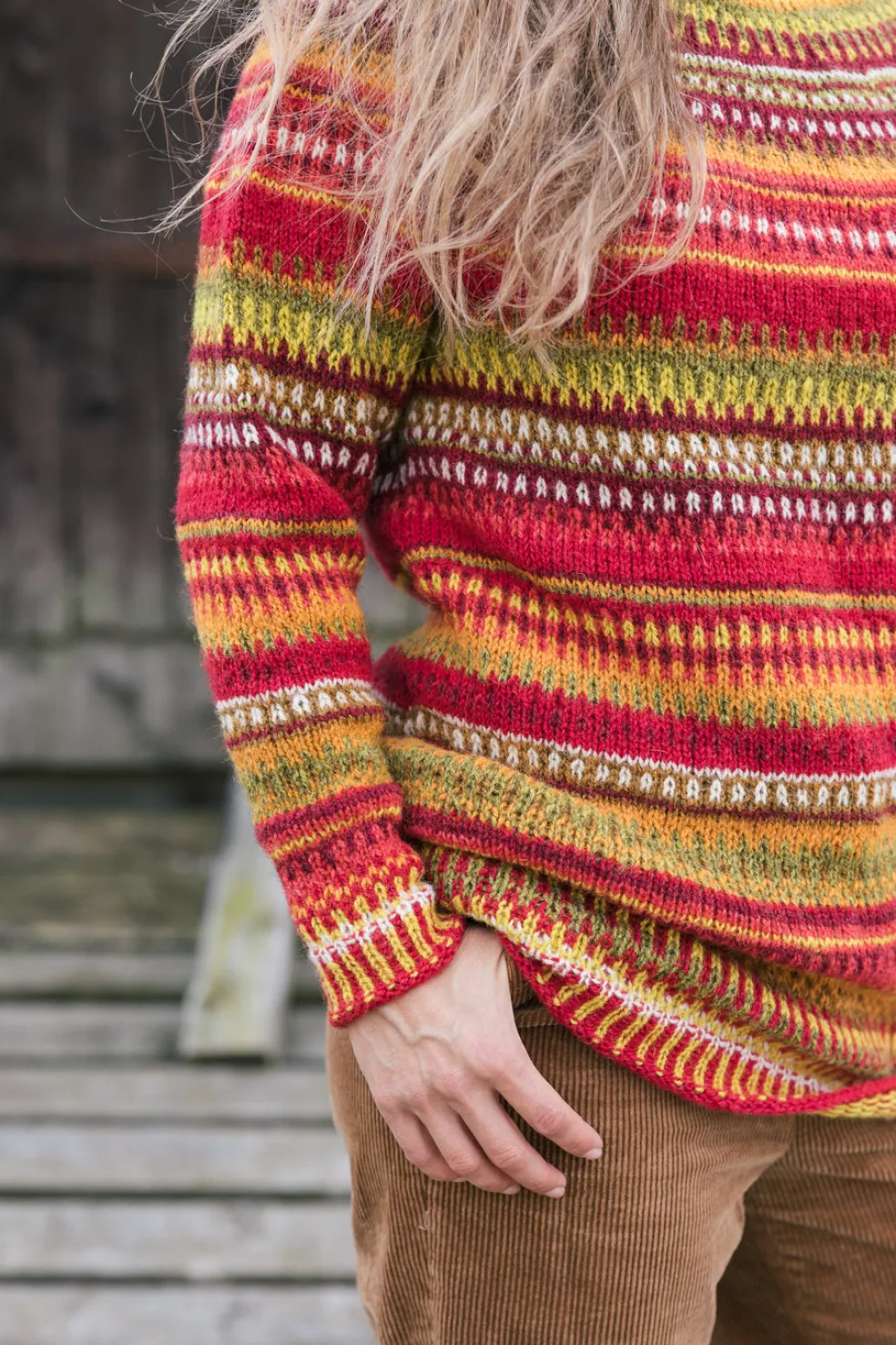Kaikki tuntevat islantilaisneuleet, mutta millainen on suomalaisneule? Yhdeksän tunnettua neulesuunnittelijaa on laatinut oman ehdotuksensa, ja lopputuloksena on seitsemäntoista eri perinteistä ammentavaa kaarrokeneulepuseroa ja -takkia, pisteenä i:n päällä slipoveri ja hame.