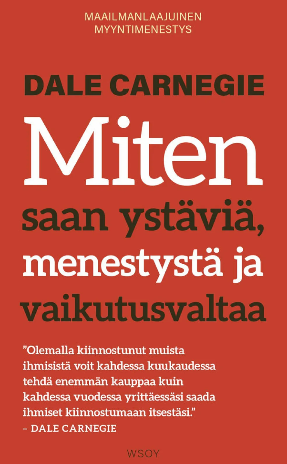Busineskouluttajaguruna ja kirjailijana tunnettu Dale Carnegie uskoi, että menestys on seurausta hyvistä kommunikointitaidoista: emme ole loogisesti, vaan tunteella ajattelevia olentoja. Toinen on saatava tuntemaan itsensä arvostetuksi, ei manipuloiduksi. Carnegie kirjoitti täsmälleen samalla tavoin kuin koulutti – eloisasti, tuttavallisesti ja terävästi. Klassikkogurun opetukset pätevät niin autokaupassa kuin tämän päivän some-todellisuudessakin.