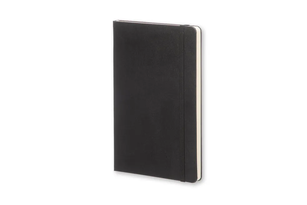The Moleskine Large Dotted Notebook now comes in black. The hard cover is bound in cardboard with rounded corners and a black elastic enclosure and bookmark. The 240 dotted pages are made from acid-free, ivory coloured paper. The notebook includes a black expandable inner pocket for loose notes and cards.