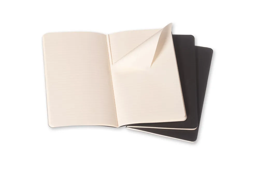 Ohuet, joustavat kartonkikantiset Cahier muistivihkot ovat täydellisiä keveisiin muistiinpanoihin, joita tarvitset jatkuvasti ja joita pidät aina mukanasi. Kolme kokovaihtoehtoa Pocket, Large ja X-Large– takaavat, että jokaiselle löytyy mieleinen. Kolme sisältövaihtoehtoa: Blanco, Viivat tai Ruudut – tarjoavat sinulle sopivan rakenteen ajatuksiesi kirjaamiseen. Lisäksi, Moleskine Cahier muistivihkoja saat kolme kappaletta pakkauksessa.
