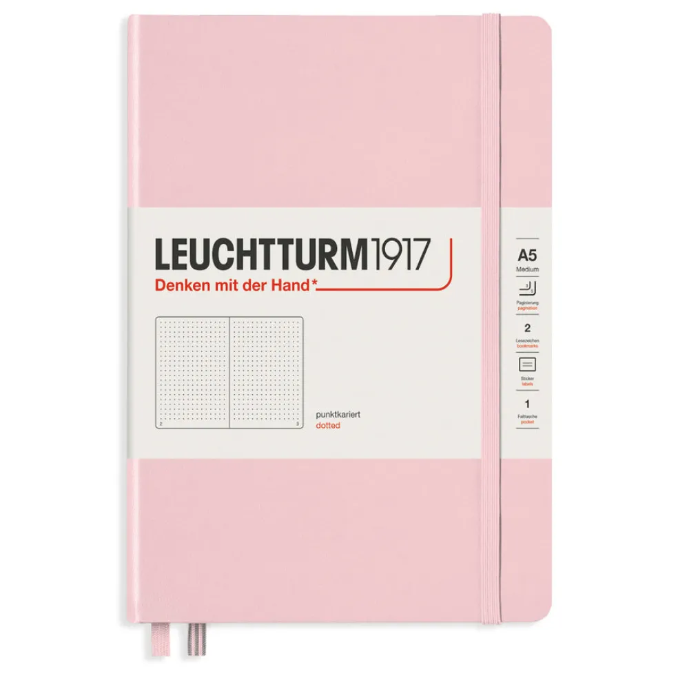 Sidottu, kovakantinen. A5-kokoinen taskullinen muistikirja, joka avautuu tasaisesti. 14,5x21cm. 251 numeroitua sivua, 80g. 8 rei’itettyä ja irrotettavaa arkkia. Tyhjä sisällysluettelo. 2 kirjanmerkkiä. Joustava kuminauha. Tarroja merkintöihin sekä arkistointiin.