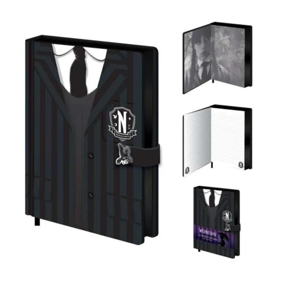 Tämä upea A5-kokoinen premium-muistikirja on täydellinen valinta kaikille Wednesday-sarjan faneille. Tyylikäs ja käytännöllinen muistikirja on varustettu kätevällä kiinnikkeellä, joka pitää sivut siististi paikoillaan. Voit käyttää sitä muistiinpanojen tekemiseen, ideoiden kirjaamiseen tai vaikka päiväkirjana. Laadukkaat sivut tarjoavat miellyttävän kirjoituskokemuksen, ja muistikirjan kompakti koko tekee siitä helpon kantaa mukana. Anna luovuutesi lentää ja tallenna tärkeät hetket tähän ihastuttavaan muistikirjaan!