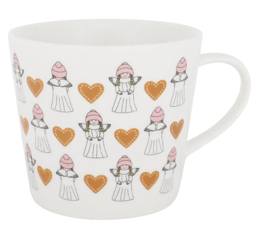 Koti muki Enkelikuoro. Valmistusmateriaali on kestävää posliinia. Mukin tilavuus 3,5 dl. Konepestävä. Soveltuu mikroon.