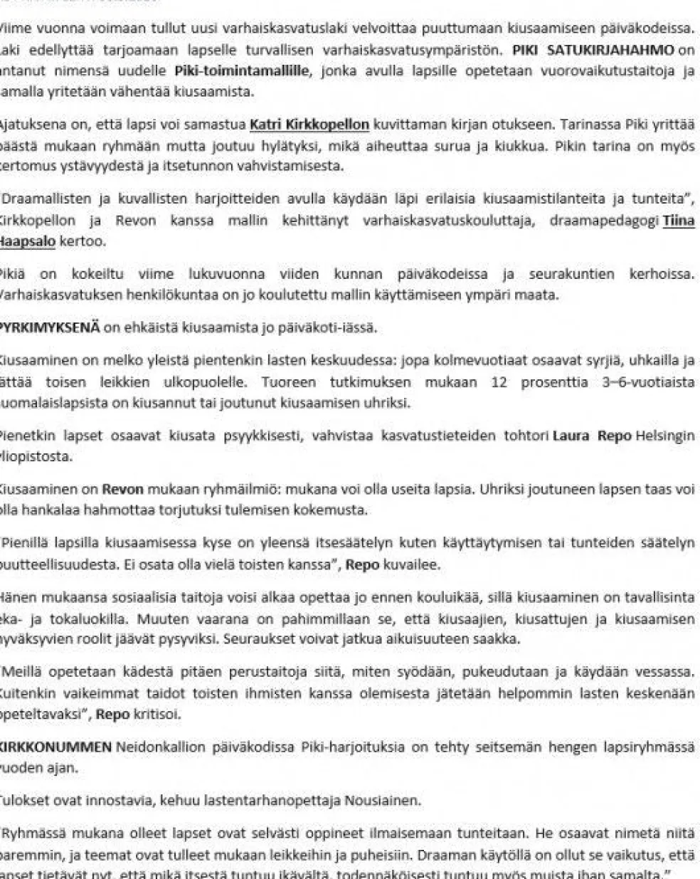 - Avainsanat kasvatus; lapset (ikäryhmät); tunnetaidot; kiusaaminen; sosiaaliset taidot; vuorovaikutus; ehkäisy