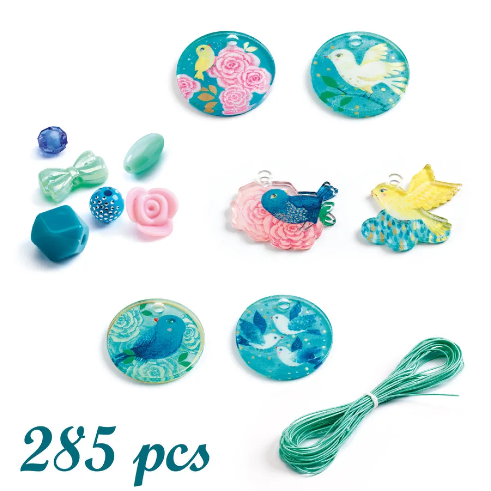Muovihelmiä (285 helmeä),joista saa tehtyä kauniita koruja. Mukana eri värejä ja muotoja. Helmet pujotetaan nauhaan ja niistä voi tehdä kaulakoruja tai rannekoruja.