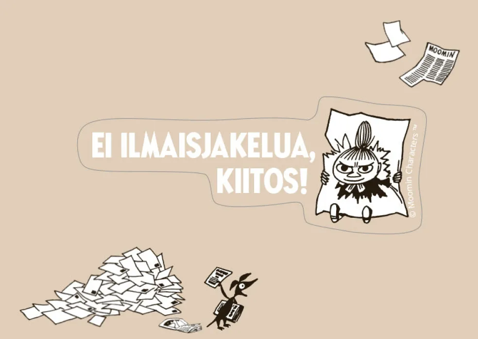 Muumi-ovitarra on valmistettu kosteutta kestävästä materiaalista, joka tarttuu hyvin ja irtoaa jälkiä jättämättä. Tarrassa on teksti ”Ei ilmaisjakelua, kiitos!” Tarran koko on 10,5 x 14,8 cm. Tämä tarra sopii täydellisesti kodin ovien koristeluun ja viestien välittämiseen. Voit käyttää sitä esimerkiksi ilmaisjakelun kieltämiseen tai yksityisyyden suojaamiseen. Lisää ripaus Muumi-magiaa kotiisi tällä kauniilla ja käytännöllisellä ovitarralla!