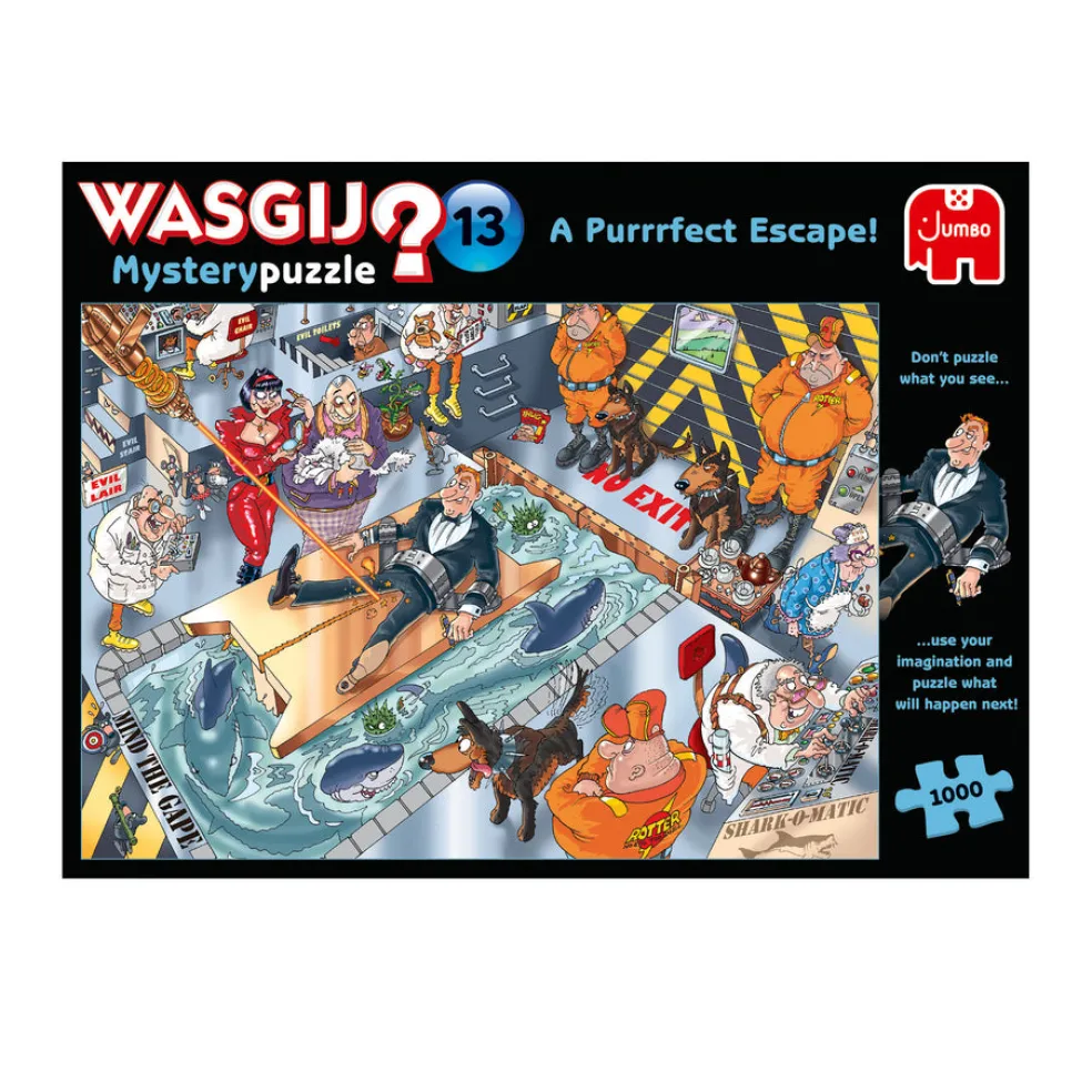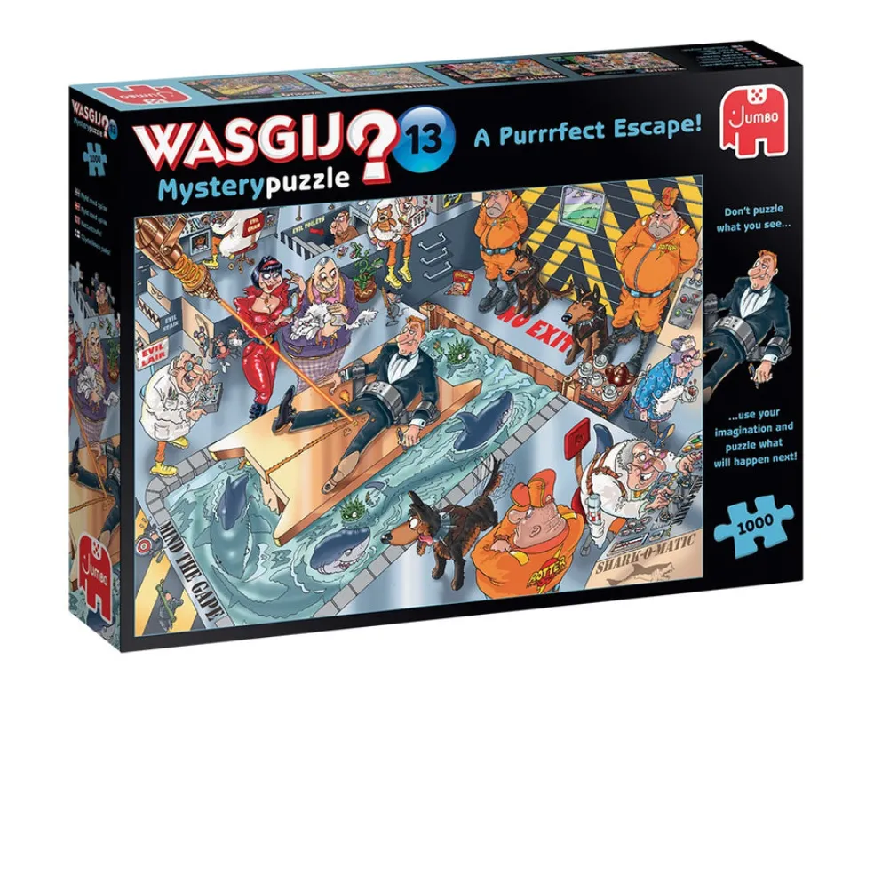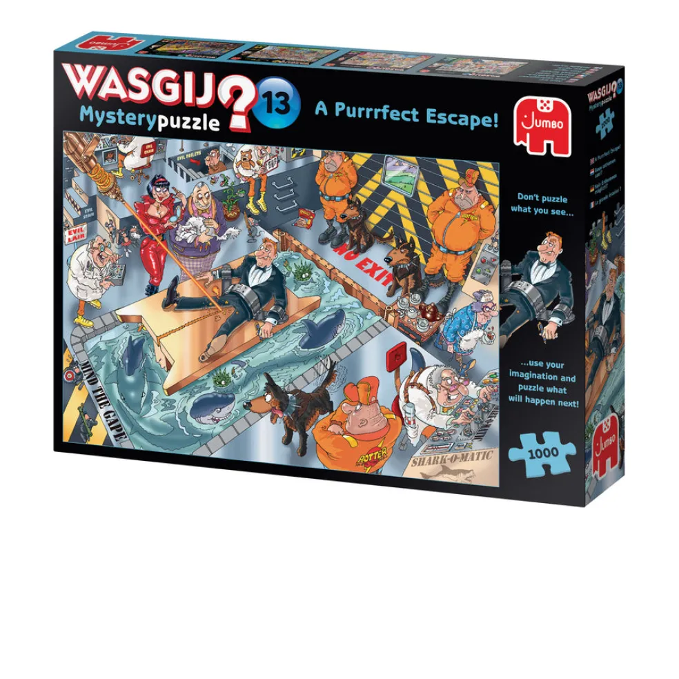Wasgij palapelit on erinomaista aivojumppaa. Palapelissä ei koota pakkauksessa näkyvää kuvaa, vaan kootaan jotain ihan muuta esim. mitä joku näkee tai mitä tapahtuu seuraavaksi. Käytä mielikuvitustasi! Laatu ja innovatiivisuus leimaavat Jumbon tuotteita. Palapelit ovat ympäristöystävällistä kierrätyspahvia. Jokainen pala on ainutlaatuinen. Palat sopivat hyvin yhteen. Valmiin palapelin koko 69 x 49 cm. Tuotteet valmistetaan Alankomaissa.