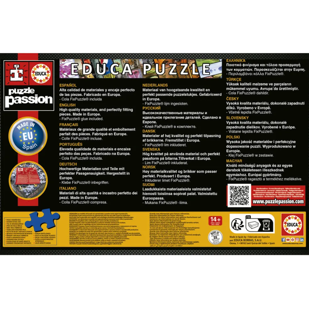 Sisältää 1000 palapelin palaa. Koko koottuna: 68 x 48 cm.