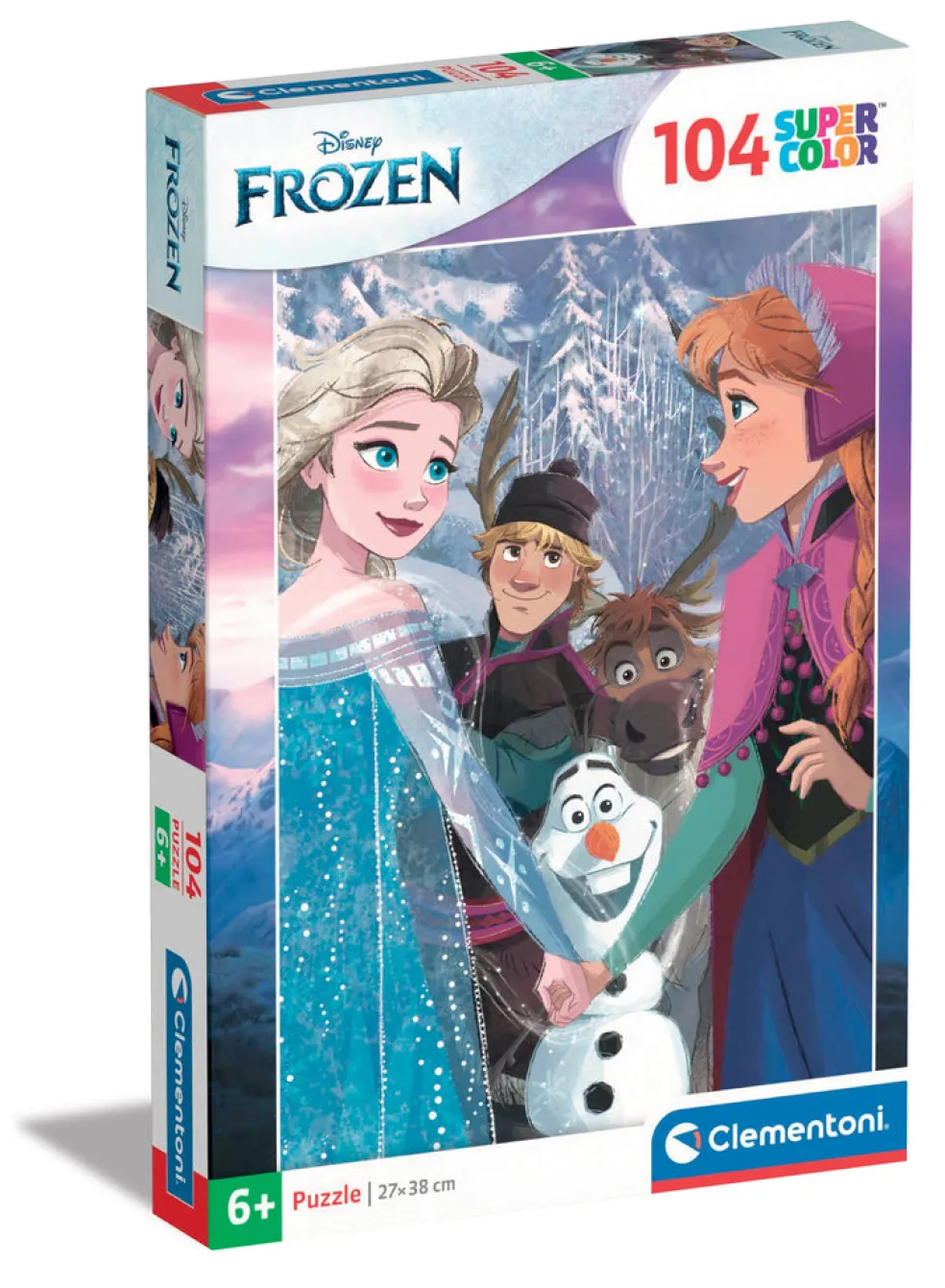 Palapelit kehittävät lapsen hahmotuskykyä ja sorminäppäryyttä. Pakkaus sisältää Frozen-aiheisen palapelin, jossa on 104 palaa. Ikäsuositus yli 6-vuotiaille.