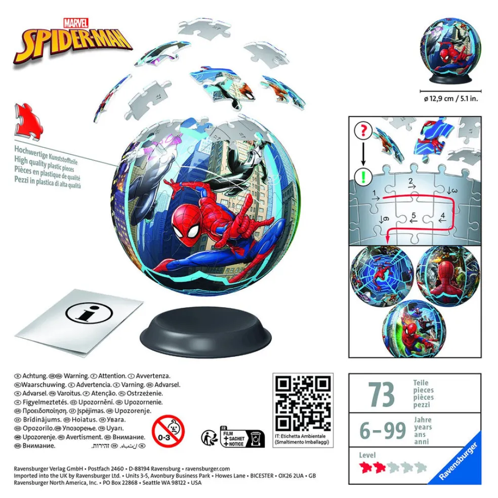 Spider-Man 72p Tutustu ainutlaatuiseen ja hauskaan kolmiulotteiseen palapelikonseptiin – Ravensburgerin 3D-palapeleihin! Easy Click -tekniikan ansiosta palapelin palat sopivat täydellisesti yhteen. Rakenna vaikuttavia 3D-esineitä yksilöllisesti muotoilluista ja taivutettavista palapelinpaloista – liimaa ei tarvita! Kokoa yhteen maailmankuuluja rakennuksia, kuten Eiffel-torni tai Empire State Building, tai löydä oma suosikkisi laajasta palapelivalikoimastamme, jossa on eri määrä paloja. Ikä 6+