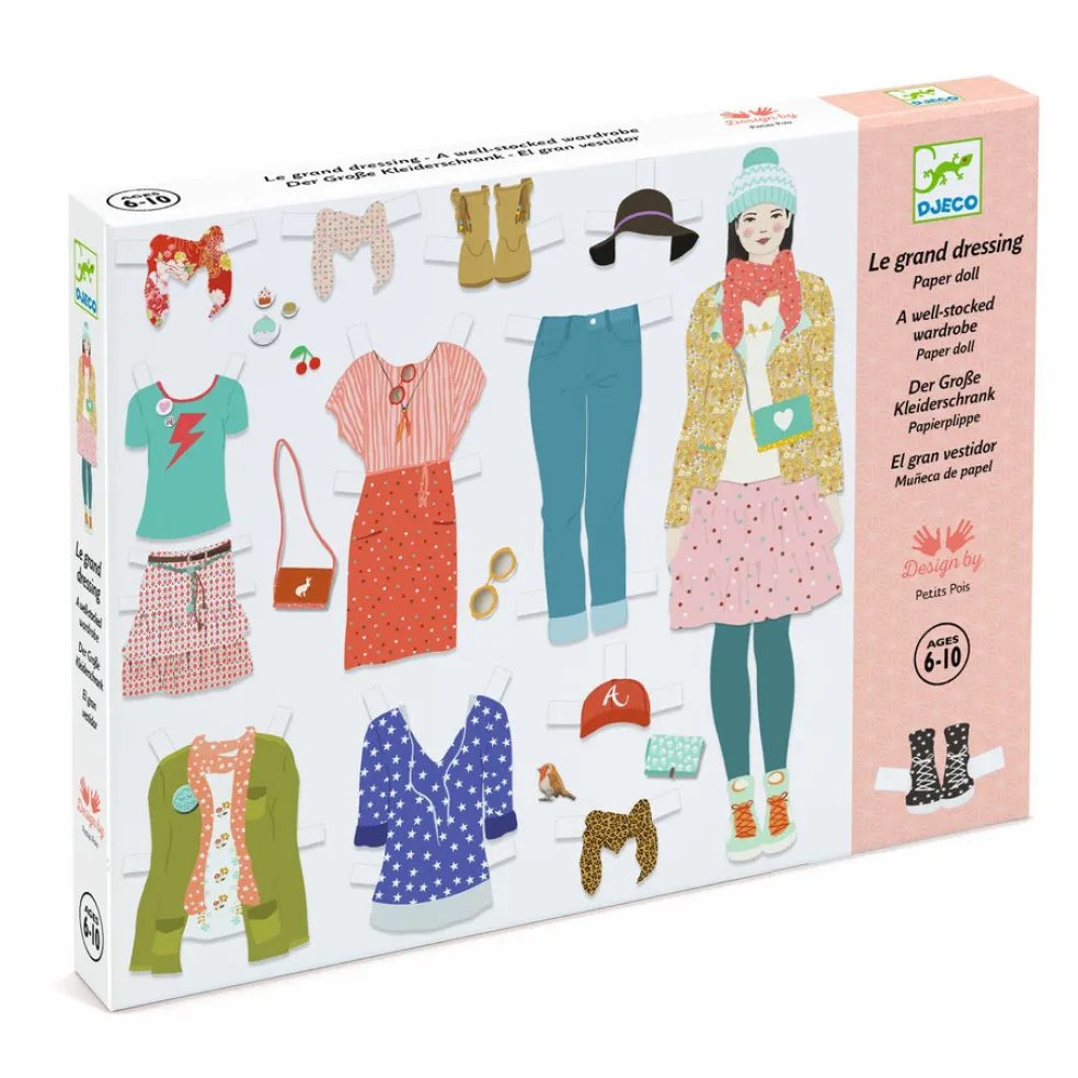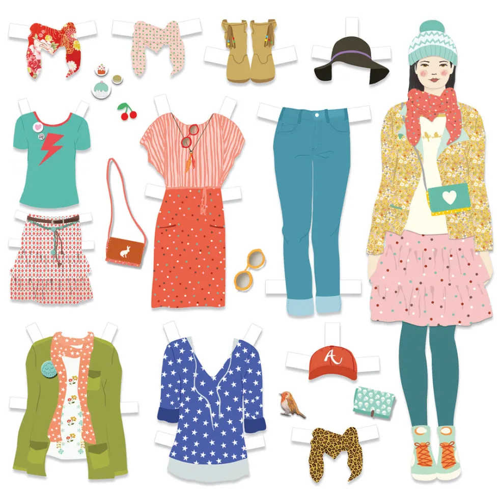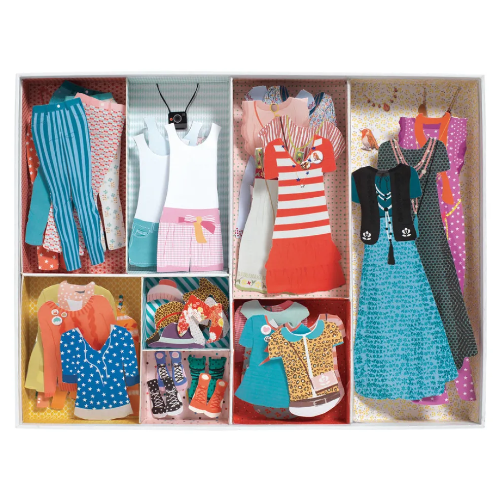 Kaikille muotisuunnittelijoille! Kolme paperinukkea voi stailata erilaisilla trendikkäillä vaatteilla ja asusteilla, yht. 100 kpl. Laatikossa on kaikille tarvikkeille omat lokeronsa, johon ne voi siististi järjestää.