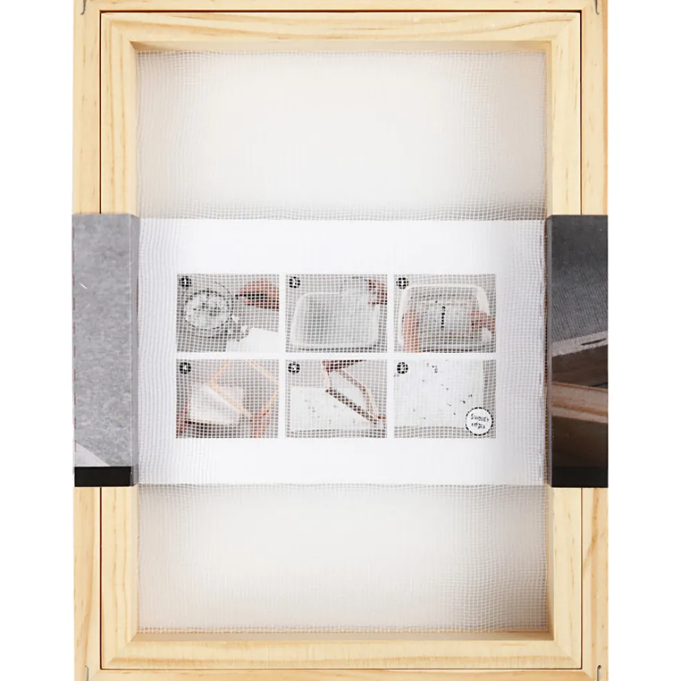 Paperinvalmitusmuotti kannella. Tee omaa paperia! Tarvitset lisäksi paperinvalmistusmassaa. Kehyksen koko: 25x19x3cm. Lakattua mäntyä.