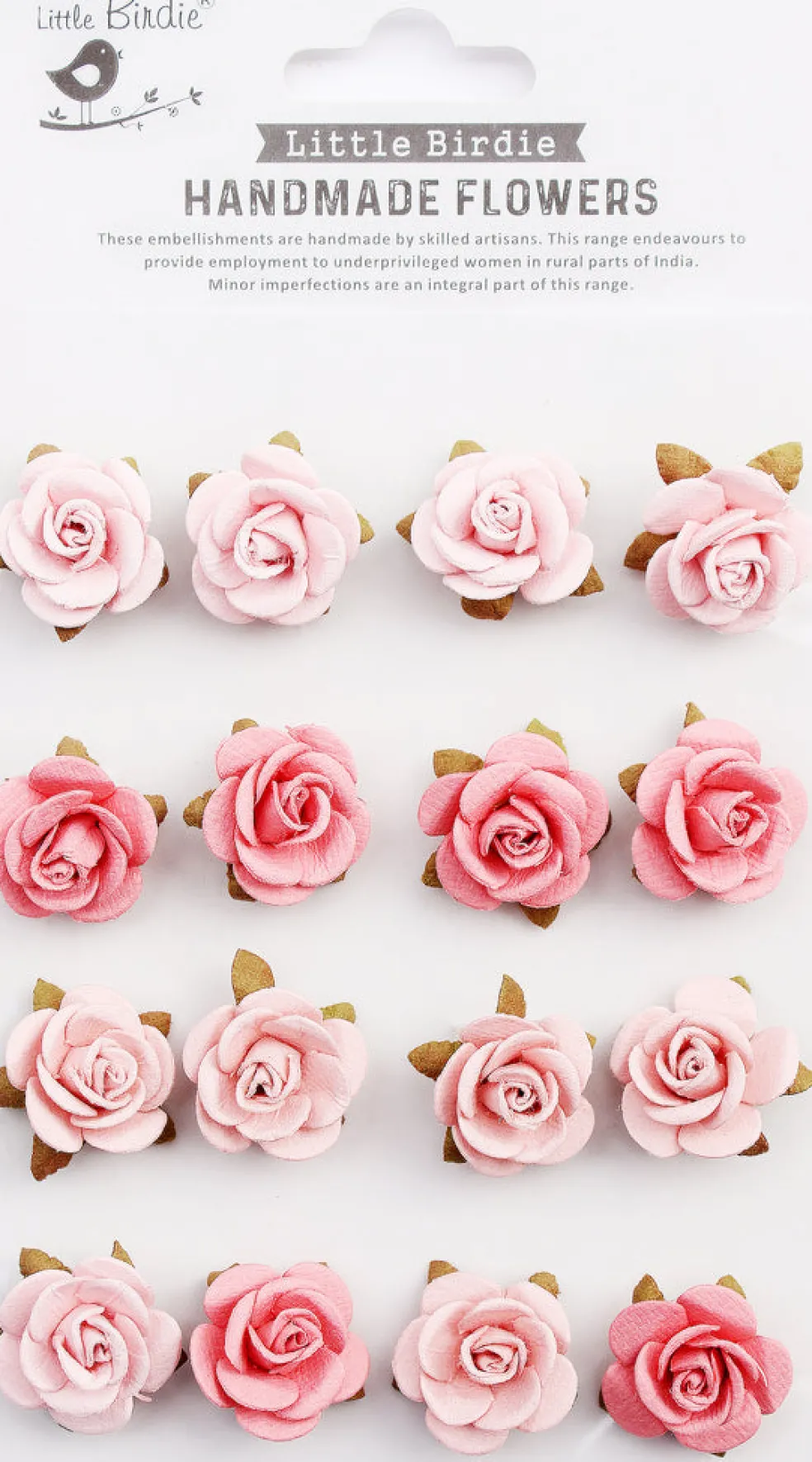 Little Birdie paperikukkakoristeet ovat taitavien käsityöläisten käsityönä valmistamia. Tämän tuoteperheen tuotannon avulla pyritään tarjoamaan työpaikkoja heikommassa asemassa oleville naisille Intian maaseudulla. Pienet puutteet ovat olennainen osa tätä sarjaa ja tekevät jokaisesta koristeesta ainutlaatuisen.