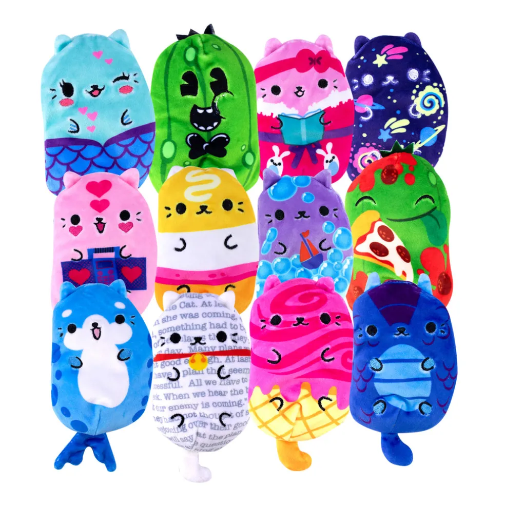 Kissat vastaan suolakurkut! Kissat pelkäävät suolakurkkuja, mutta se johtuu vain siitä, että ne eivät ymmärrä toisiaan. Söpöjä ja pehmoisen kissamaisia – ja suolakurkkumaisia – papupehmoja erilaisilla väreillä ja kuoseilla. Kerää vaikka kaikki! Pehmojen korkeus on n. 10 cm. 0+