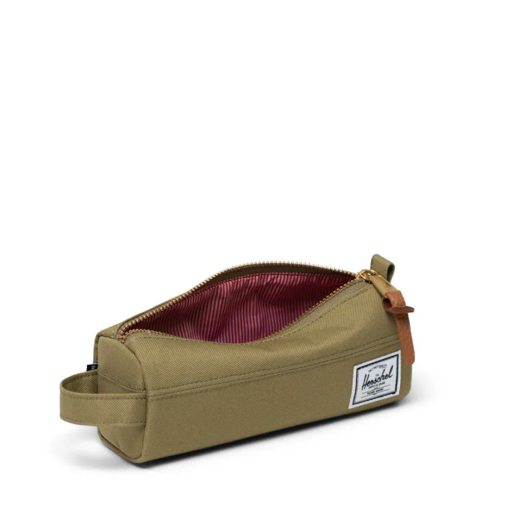 Kestävästä materiaalista tehty penaali kantokahvalla. Penaalin koko: Korkeus 70 mm Leveys 66 mm Paksuus 64 mm Herschel tuotteilla on elinikäinen takuu.