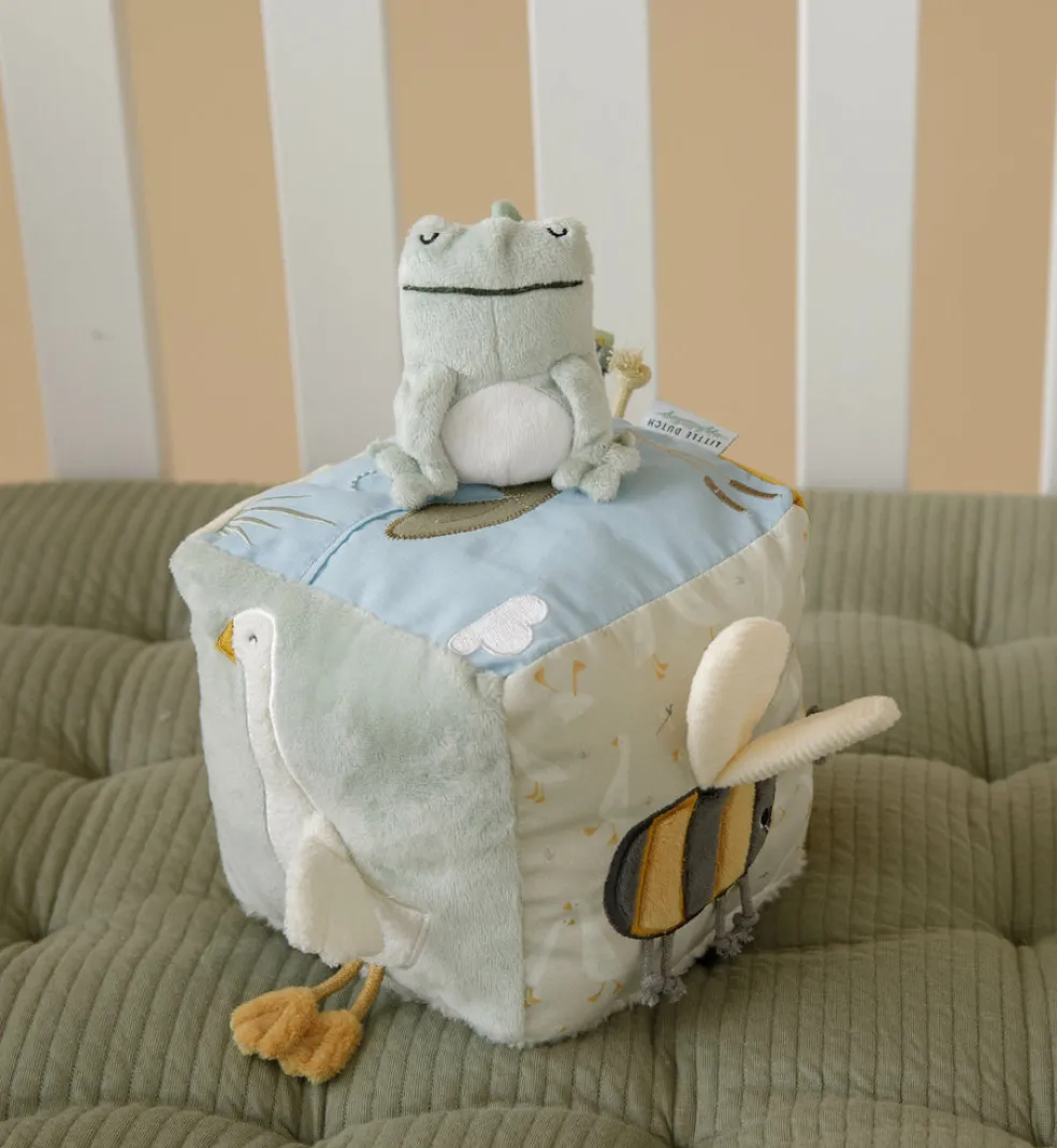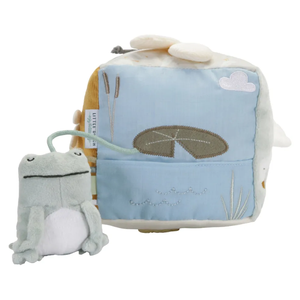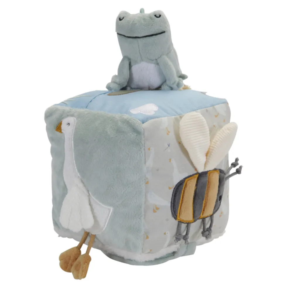 Pikku hanhi pehmeä aktiviteettikuutio, jossa monenlaista pintaa tunnusteltavana ja katsottavana. Ikäsuositus + 0kk.