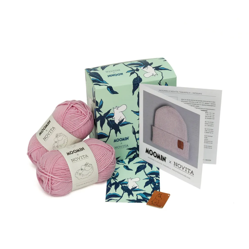 Neulo itse merinovillainen Moomin x Novita Taikapilvi -pipo lapselle tai aikuiselle! Pakkaus sisältää langat ja ohjeen pipolle sekä nahkajäljitelmäisen Muumi-merkin, jonka voi kiinnittää valmiiseen pipoon. Pakkauksesta löytyy Muumi-aiheinen postikortti, joka tekee tästä myös suloisenpehmeän lahjan – neulo pipo lahjaksi tai anna pakkaus neulojalle lahjaksi.