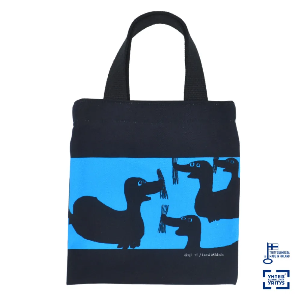 Upeat erityistä tukea tarvitsevien ja kehitysvammaisten taiteilijoiden työt nyt kangaskasseissa! Suomessa painetut ja valmistetut kangaskassit esittelevät eri tyylisuuntien taiteilijoita ja muistuttavat taiteen kuuluvan kaikille. Taiteilija Leevi Mikkola tekee taidetta tietokoneella ja käsin. Hänen teoksissaan ovat aiheina usein hänelle tärkeät ihmiset ja kausittain vaihtuvat eläimet. Kangaskassiin on painettu hänen teoksensa Hylkeet. Kassin koko: 20x23cm, kahvat 26 cm. Materiaali: 100% puuvilla. Tuotetiedot painatettu kierrätyspahville Espoossa. Kassi on painettu Aitoossa ja valmistettu Väylä ry:n ompelutilassa Espoossa käsityönä. Tuotteen valmistamiseen on osallistunut kehitysvammaisia työntekijöitä, jotka saavat työstään työehtosopimuksen mukaista palkkaa.