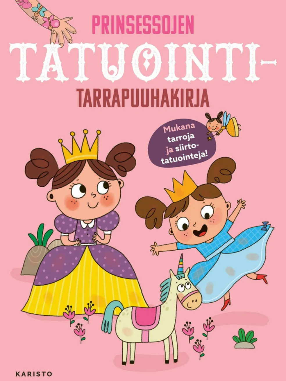 Kirjassa on mukana tarroja sekä tatuointikuvia, jotka voit siirtää iholle ohjeiden mukaan. Upeita prinsessahetkiä!