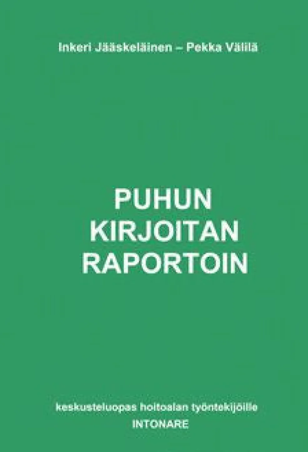 Puhun, kirjoitan, raportoin -keskusteluopas on tarkoitettu hoitotyötä tekeville, jotka haluavat osata puhua ja kirjoittaa suomea hyvin. Sopii erinomaisesti itsenäiseen kielitaidon kehittämiseen ja kielentuntemuksen lisäämiseen sekä viestinnällisen osaamisen laajentamiseen. Tietoa saa myös kielen rakenteista, joita tarvitaan selkeän raportin kirjoittamiseen.