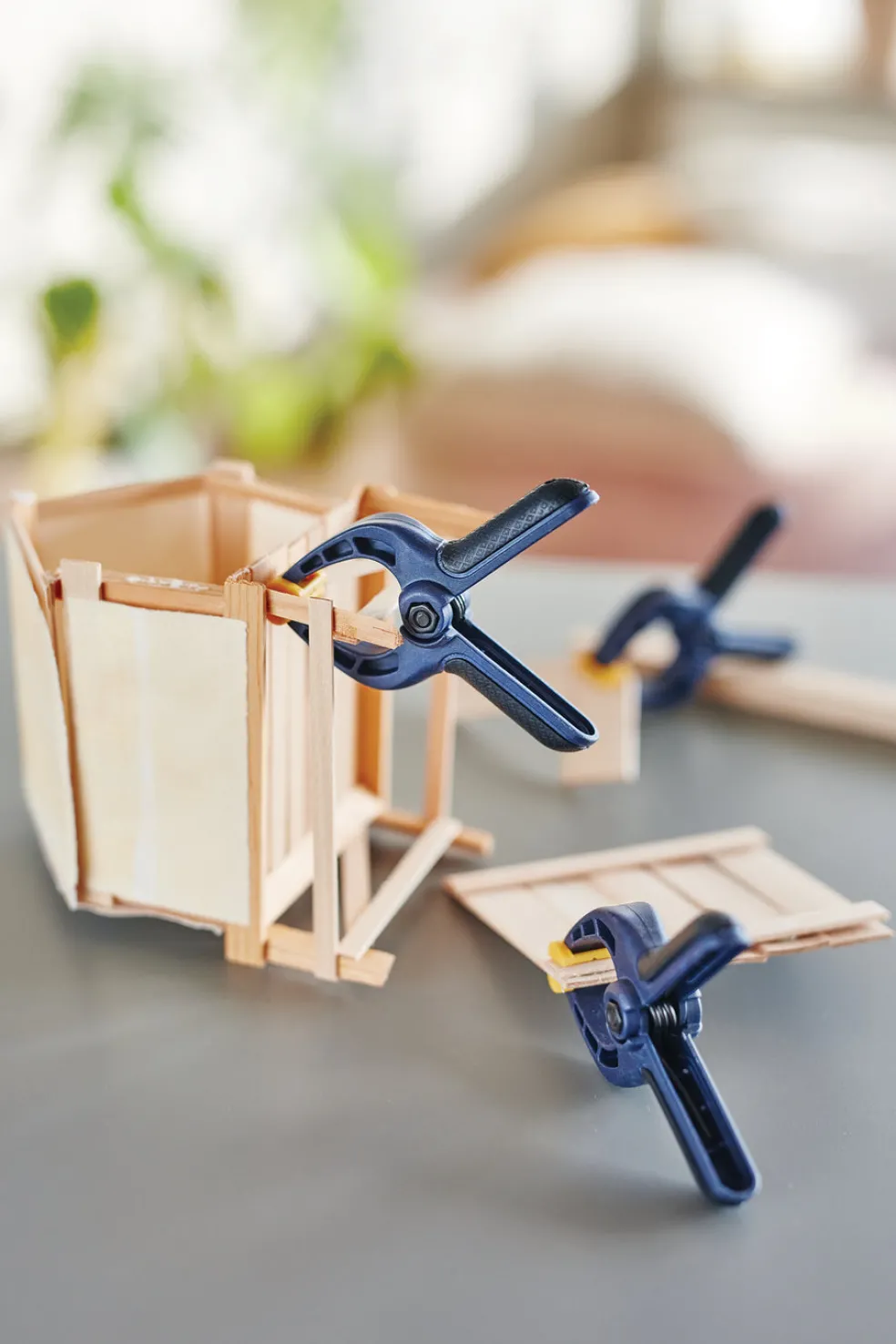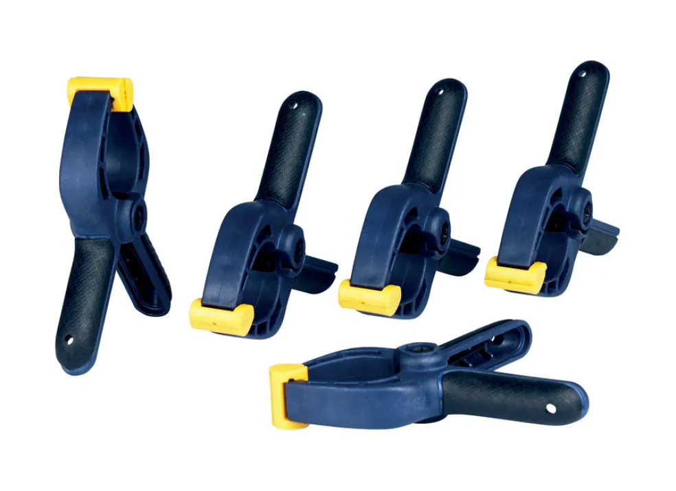 Kätevä sarja minipuristimia. Pakkaus sisältää 5 kappaletta jousitoimisia puristimia, joita voit hyödyntää askartelussa ja liimaustöissä. Pehmustettu kärki ei jätä jälkiä materiaaliin.
