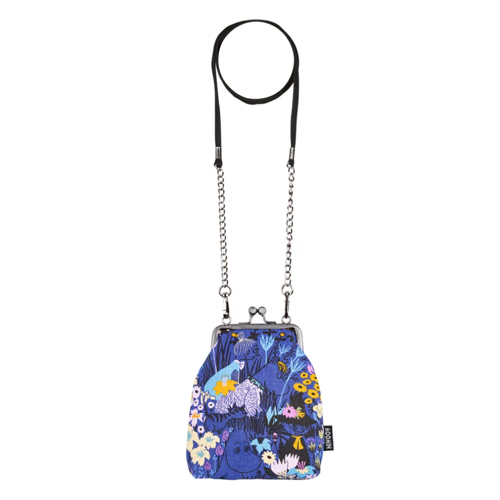 Tämä sininen Muumi-pussukka on valmistettu kestävästä puuvillakankaasta. Laukussa on kaunis Muumi-aiheinen kuviointi, joka tuo iloa päivääsi. Olkahihna on säädettävä ja osittain metallinen, ja sen pituus on 130 cm. Hihna on myös irrotettavissa tarvittaessa. Laukussa on kätevä nupillinen metallilukko, joka pitää tavarasi turvassa. Laukun metalliosat ovat tyylikkään mustat. Tämä laukku on täydellinen valinta kaikille Muumi-faneille, jotka haluavat käyttää käytännöllistä ja tyylikästä laukkua arjessaan.