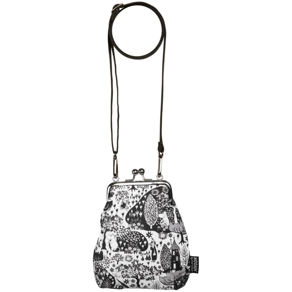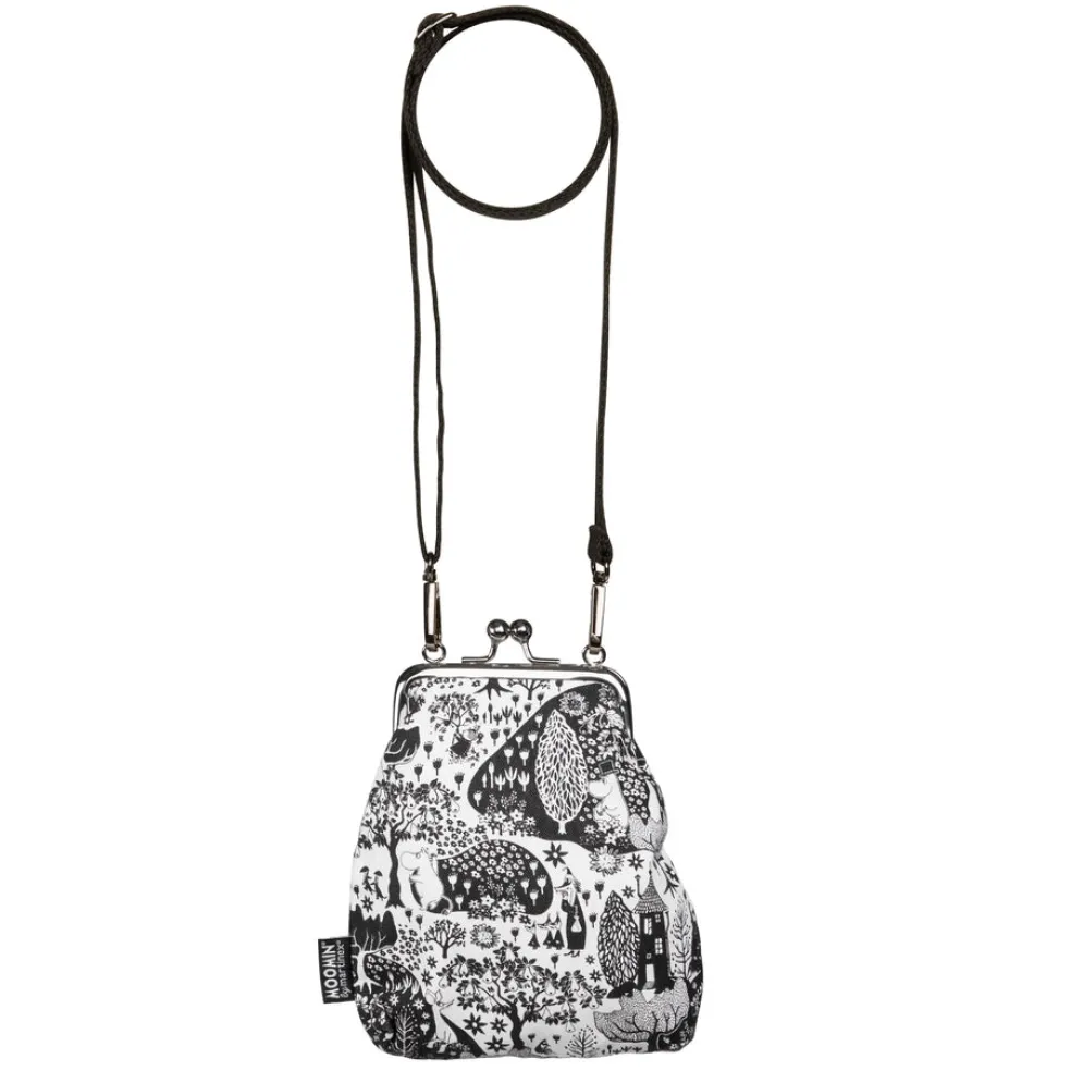 Tukevasta puuvillakankaasta valmistettu pikkulaukku. Säädettävä, kankainen olkahihna (135 cm) on irrotettavissa. Laukussa on nupillinen metallilukko. Laukun metalliosat ovat hopeanväriset.