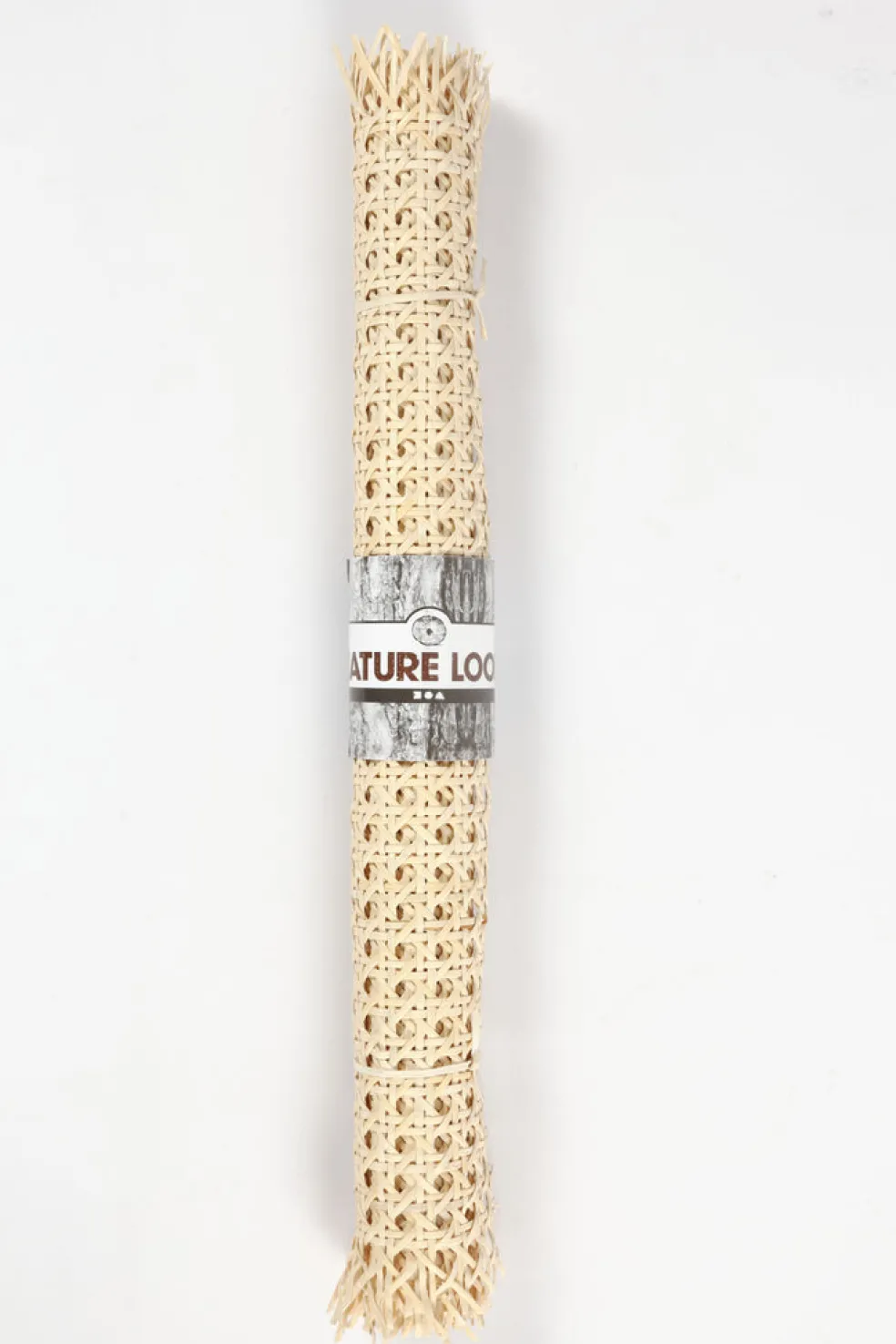 Rulla punottua ja lakkaamatonta rottinkia. Voidaan leikata vahvoilla saksilla.