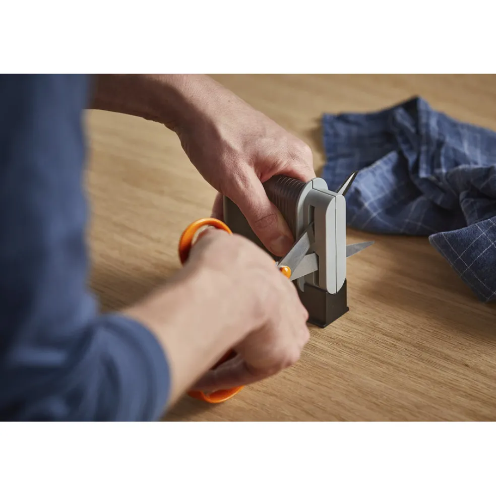 Teroitin ei sovellu sahateräisille, siksak- tai kaarevateräisille eikä vasenkätisille saksille. Käyttämällä säännöllisesti Fiskars Clip-Sharp -saksienteroitinta pidät sakset terävinä pitkään. Toimii ilman sähköä. Ei sovellu hius- ja siksak-saksille.