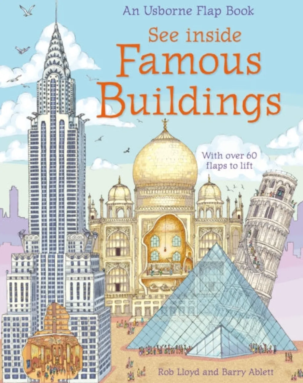 Lets you discover and explore some of the world’s most famous buildings. This book reveals the building’s interior and facts such as how they were built and their histories. It features Empire State Building, Guggenheim Museum, Himeji Castle, Versailles Palace, Blue Mosque, and Notre Dame Cathedral.