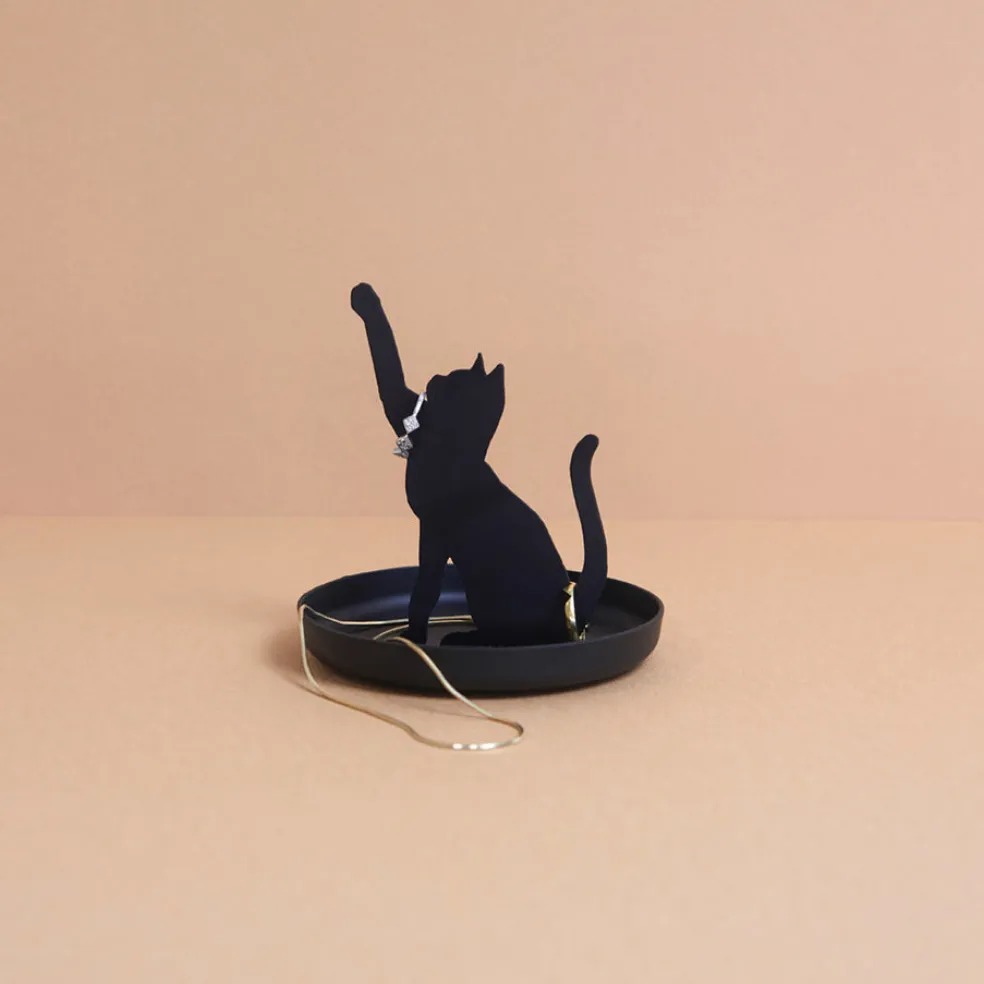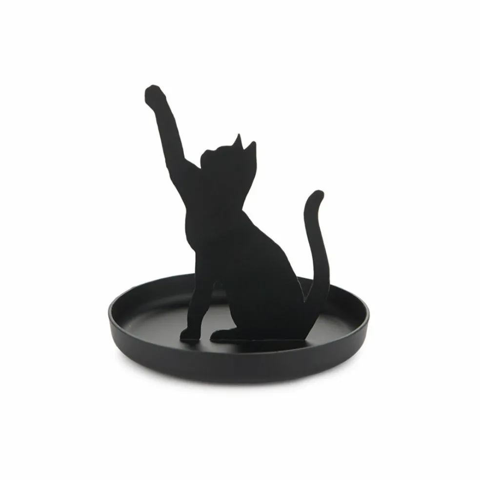 Tämä musta metallinen kissanmuotoinen sormusteline on täydellinen lisä korujen säilytykseen. Sen elegantti ja tyylikäs muotoilu tekee siitä ihanteellisen lahjan niin korujen kuin kissojenkin ystäville. Voit asettaa sormuksia kissan hännälle tai korville, jolloin ne pysyvät järjestyksessä ja helposti saatavilla. Tämä sormusteline ei ainoastaan pidä korusi kauniisti esillä, vaan tuo myös ripauksen leikkisyyttä ja charmia mihin tahansa huoneeseen. Se on käytännöllinen ja kaunis ratkaisu, joka ilahduttaa jokaista, joka arvostaa sekä estetiikkaa että toimivuutta. Täydellinen lahjaidea syntymäpäiville, juhliin tai ihan vain arjen iloksi!