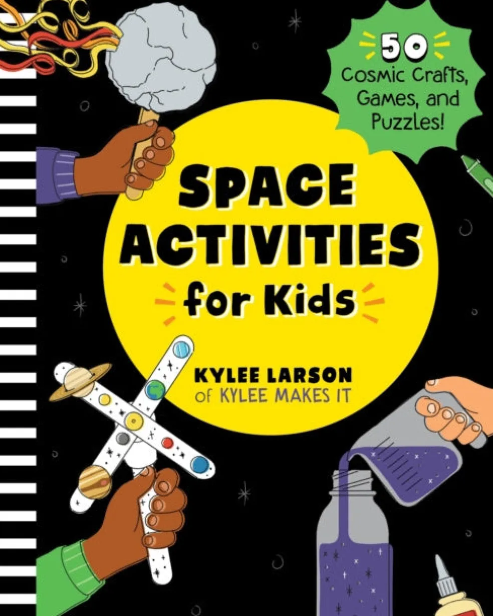Embark on an interstellar journey with this space-themed activity book for kids 4 to 8?from Kylee Makes It!Kids will explore the universe as they build new skills with this book of puzzles, crafts, and experiments created by Kylee Larson of the Kylee Makes It website and YouTube channel. Engaging and hands-on space activities will teach kids all about the stars and planets that surround us as they build a model of our solar system, lead a Mars Rover through a maze, imagine a tourist attraction on Venus, and so much more!50 activities to try?Some can be done right inside the book, and some are off-the-page projects for kids and their grown-ups to do together?all you”ll need are some basic art supplies and household items.Something for every little astronaut?Discover a wide range of word searches, color-by-numbers, clay cracking, papier mâché, fun facts, and beyond, all centered around outer space.Fun AND educational?Kylee Larson is an artist and maker whose expertise and creativity have made her a popular creator, beloved by hundreds of thousands of kids.Encourage curious kids to blast off into a world of fun and learning with Space Activities for Kids!
