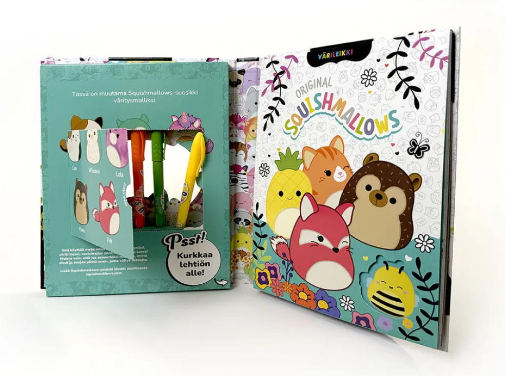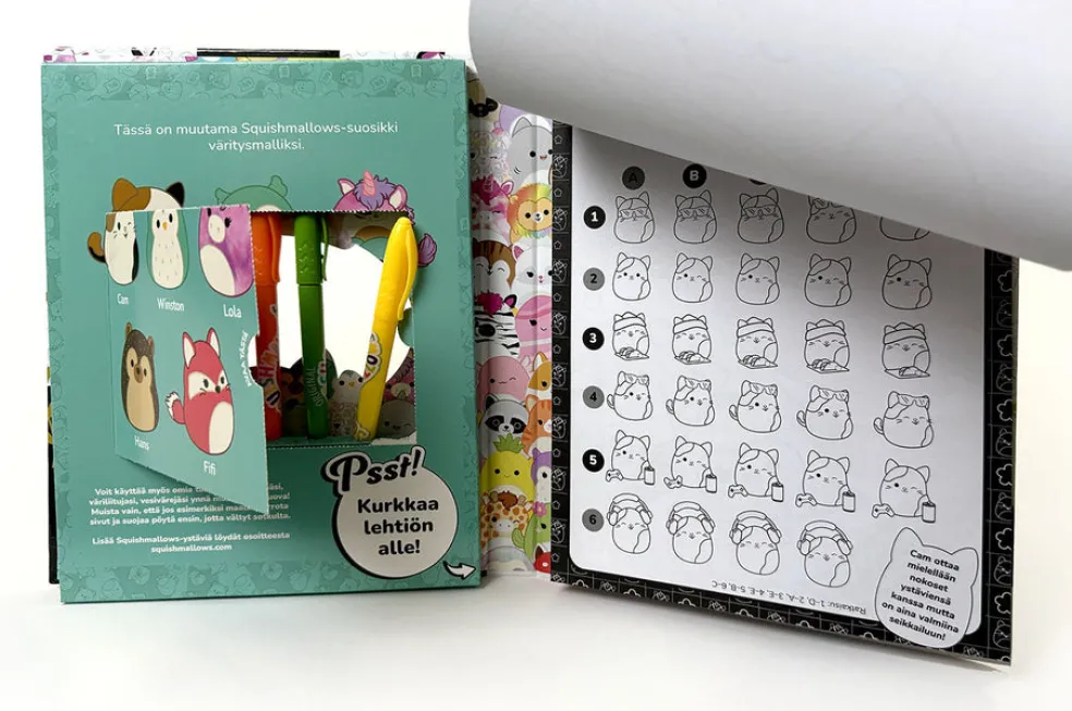 - Avainsanat värityskirjat; suositut hahmot; Squishmallows; värityssetit