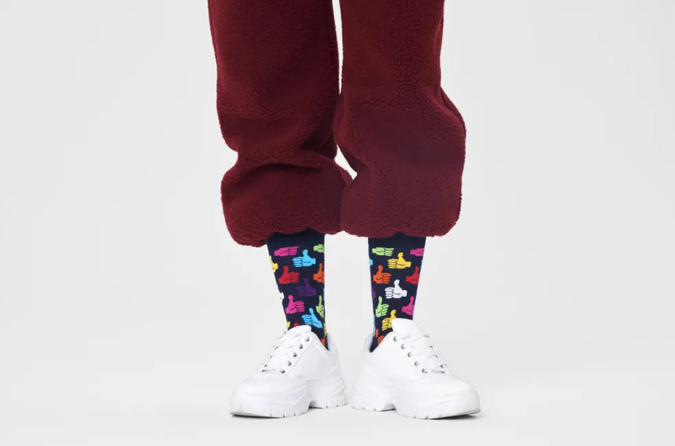 Anna itsellesi iso peukku. Et tarvitse kenenkään muun hyväksyntää, kun sinulla on nämä sukat jalassasi. Säteilet ympärillesi positiivista energiaa koko päivän, sillä tämä monivärinen kuvio saa sinut aivan varmasti hymyilemään. Valmistettu pehmeästä ja hengittävästä luomupuuvillasta.