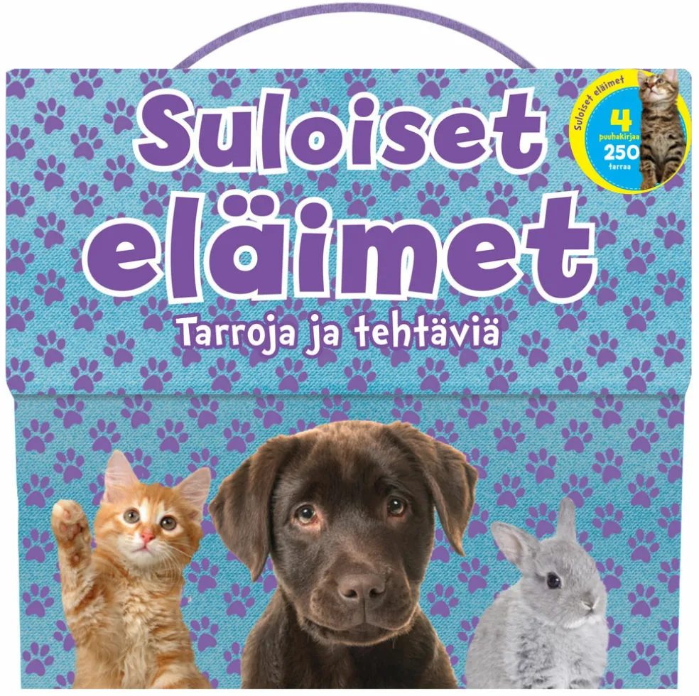 Tämä hellyttävän suloinen puuhapakkaus on täynnä tehtäviä, tarroja ja askartelua. Neljän eläinaiheisen kirjan sivuilla seikkailee koko joukko eläinpienokaisia leikkisistä kissanpennuista pörheisiin pingviineihin. Kätevä salkku kulkee näppärästi jokaisen eläinrakkaan puuhailijan tassuissa.