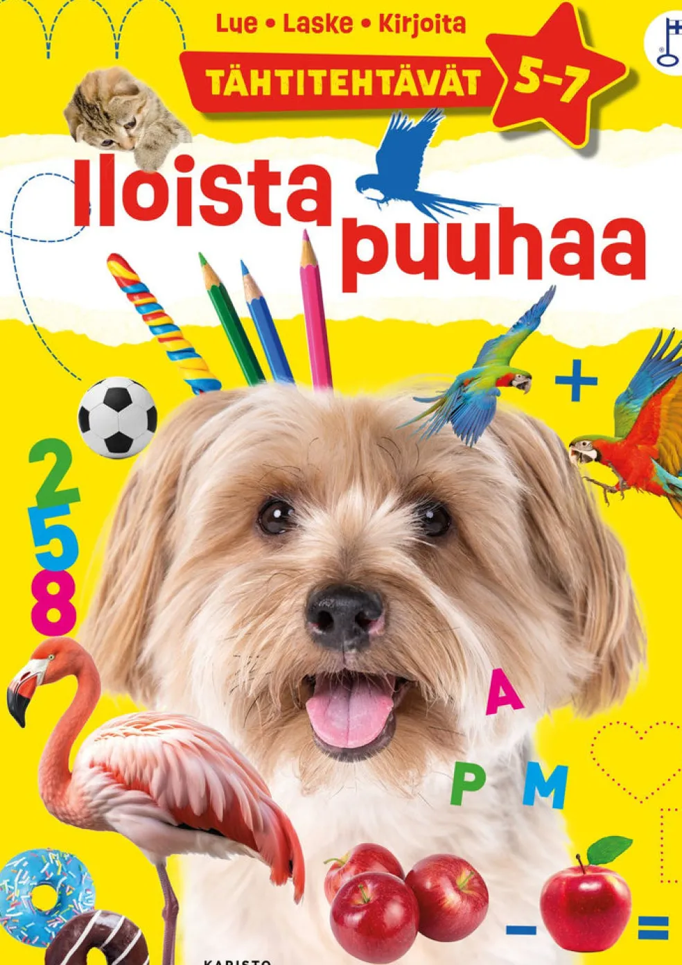 Iloisia puuhatehtäviä lukemisen, laskemisen ja kirjoittamisen harjoitteluun. Sopii eskarilaisille ja ekaluokkalaisille.