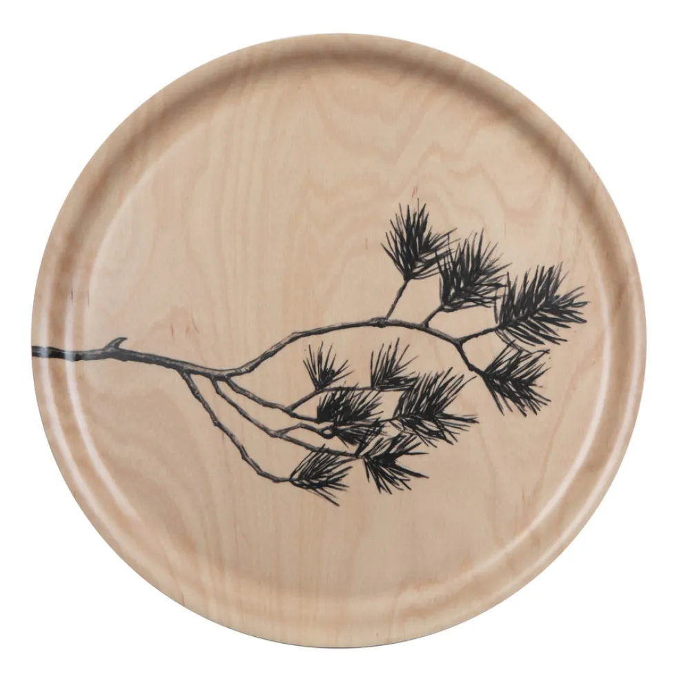 Tarjotin Havu, melamiinipintainen koivuvaneri, halk. 35 cm avainlippu ja Design from Finland merkki