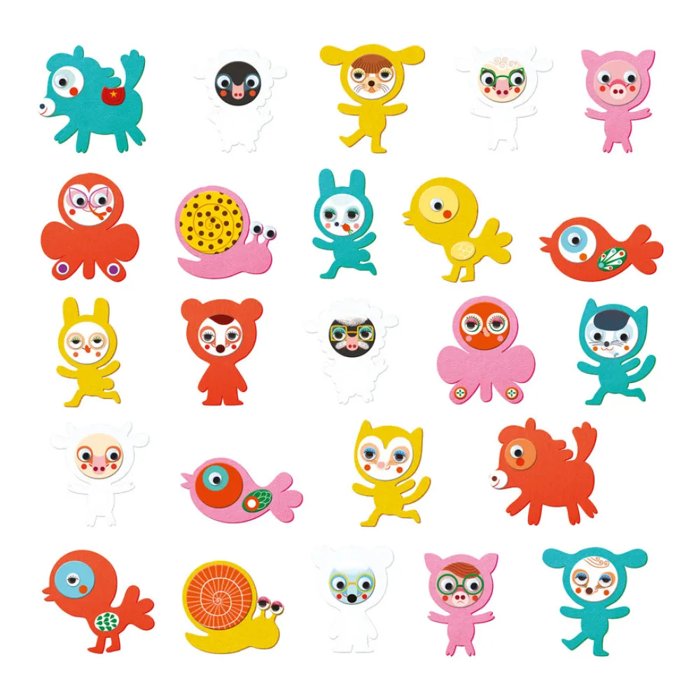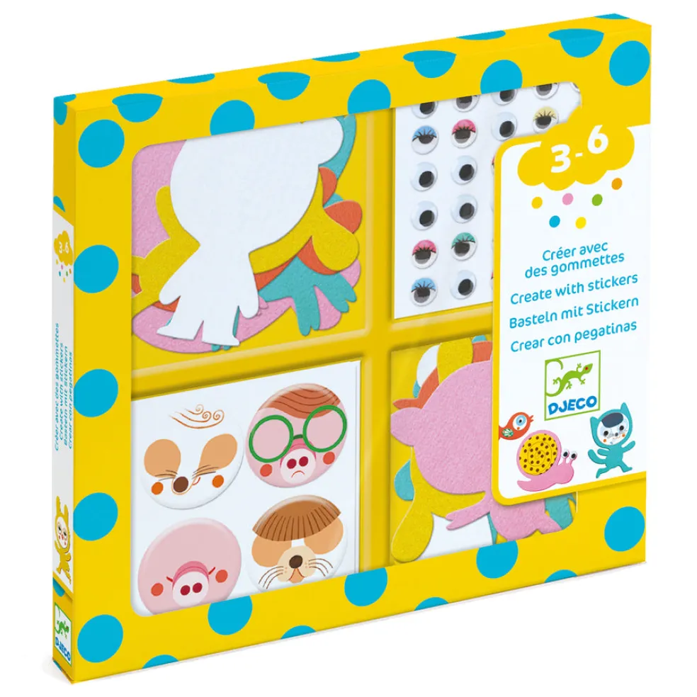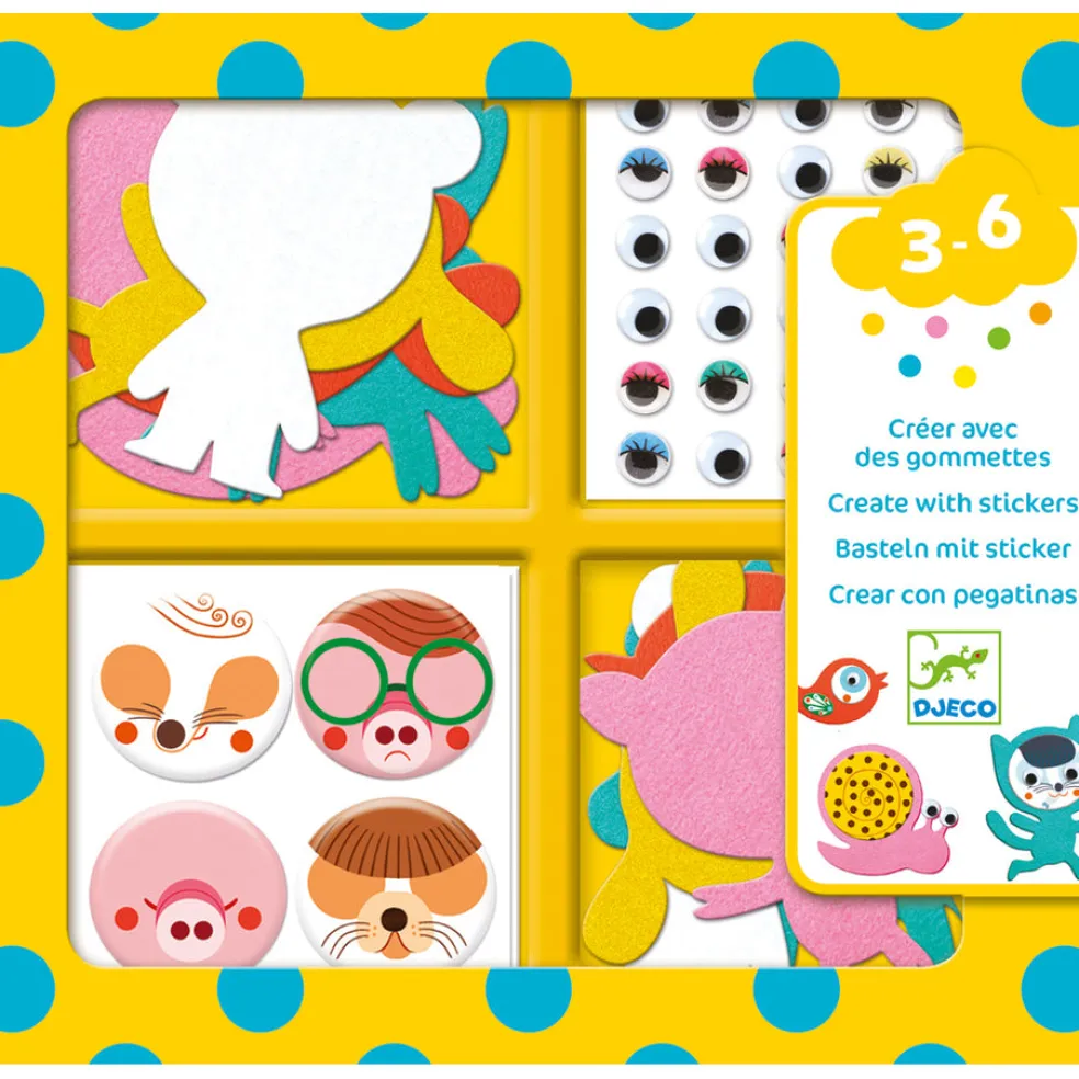 Eläin-aiheinen tarra-askartelu on tehty erityisesti pienille lapsille. Valmiiksi leikatut huopaeläimet koristellaan. Myös huopaeläimet ovat tarroja.