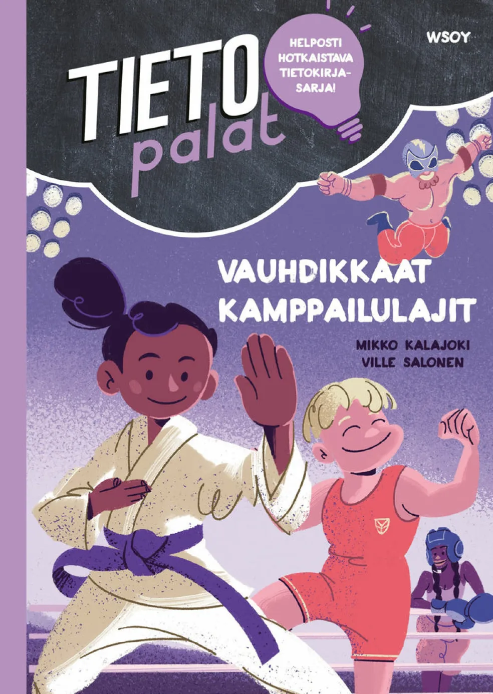 Helppolukuinen tietokirja esittelee vinon pinon vauhdikkaita kamppailulajeja painista potkunyrkkeilyyn ja karatesta capoeiraan.