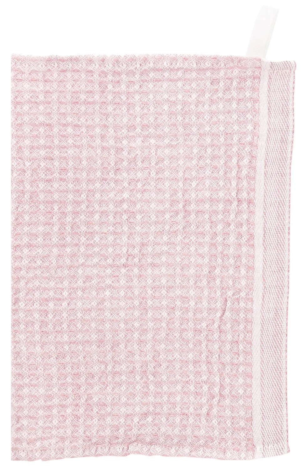 Maija-tiskirätti. Koko 25×32 cm. Väri valko-roosa. Materiaali eurooppalainen Masters of Linen pellava, tencel ja puuvilla. Design Team Lapuan Kankurit. Valmistettu Suomessa. Avainlippu-tunnus.