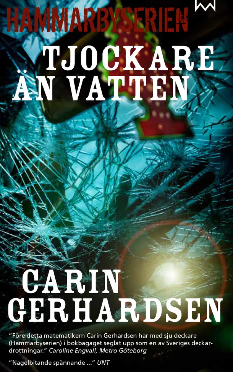 Medan klockan tickarEn rad dräpta katter, omsorgsfullt utplacerade i anslutning till vatten, väcker känslor i Stockholms södra förorter. Men när en respekterad psykolog hittas dränkt och stympad i sitt eget badkar får Conny Sjöberg och hans team annat att tänka på.Efter ett fall på tjugofem meter hamnar en man på framrutan till en bil, och utredningsarbetet tar en ny vändning. Spåren pekar mot en serie bestialiska handlingar i det förflutna, och så småningom går det upp för de inblandade att en ny katastrof väntar om hörnet.Medan klockan tickar rivs gamla sår upp, inte minst för några av poliserna själva.Tjockare än vatten är den sjunde, fristående boken i Carin Gerhardsens framgångsrika serie om Hammarbypolisen. En hisnande thriller om det omöjliga i att göra sig fri från de drifter och demoner som formar och jagar oss genom livet.Tjockare än vatten utsågs av Apple/iTunes till bästa svenska skön-litterära bok 2014 och vann samma år Stora Ljudbokspriset för bästa deckare. Spänning kring vatten med originellt grepp. ICA-KurirenJag har väntat länge på att någon deckarförfattare ska fånga mig på samma sätt som Stieg Larsson. Nu har jag hittat Carin Gerhardsen. Efva Attling, Styleby Intrigen är intelligent, vändningarna många och när man tror sig veta hur allt hänger ihop visar det sig att man misstagit sig totalt. Tack och lov. Norran Här är en gedigen, mycket välskriven kriminalroman med en berättelse som visar att vårt förflutna alltid finns med oss. Skaraborgs Allehanda
