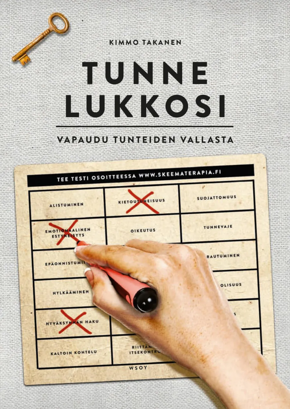 Tunne lukkosi -teos auttaa sinua tiedostamaan tunne-elämän lukkosi ja niiden vaikutuksen elämässäsi havainnollisten kuvausten ja esimerkkien avulla. Se opastaa sinua uudella tavalla ymmärtämään menneisyytesi vaikutuksen nykyhetkessä ja auttaa sinua näkemään vaihtoehtoisia ratkaisumalleja elämäsi haasteissa. Kirja auttaa sinua vihdoin saamaan sen, mitä sisimmässäsi olet aina todella halunnut. Kirjassa on kattavat kuvaukset kaikkien 18 tunnelukon piirteistä sekä testejä, joilla voit kartoittaa tunnelukkosi ja niiden alkuperän. Kirja tarjoaa useita skeematerapiaan pohjautuvia käytännön harjoituksia, joilla voit itse auttaa itseäsi vapautumaan lukoistasi.