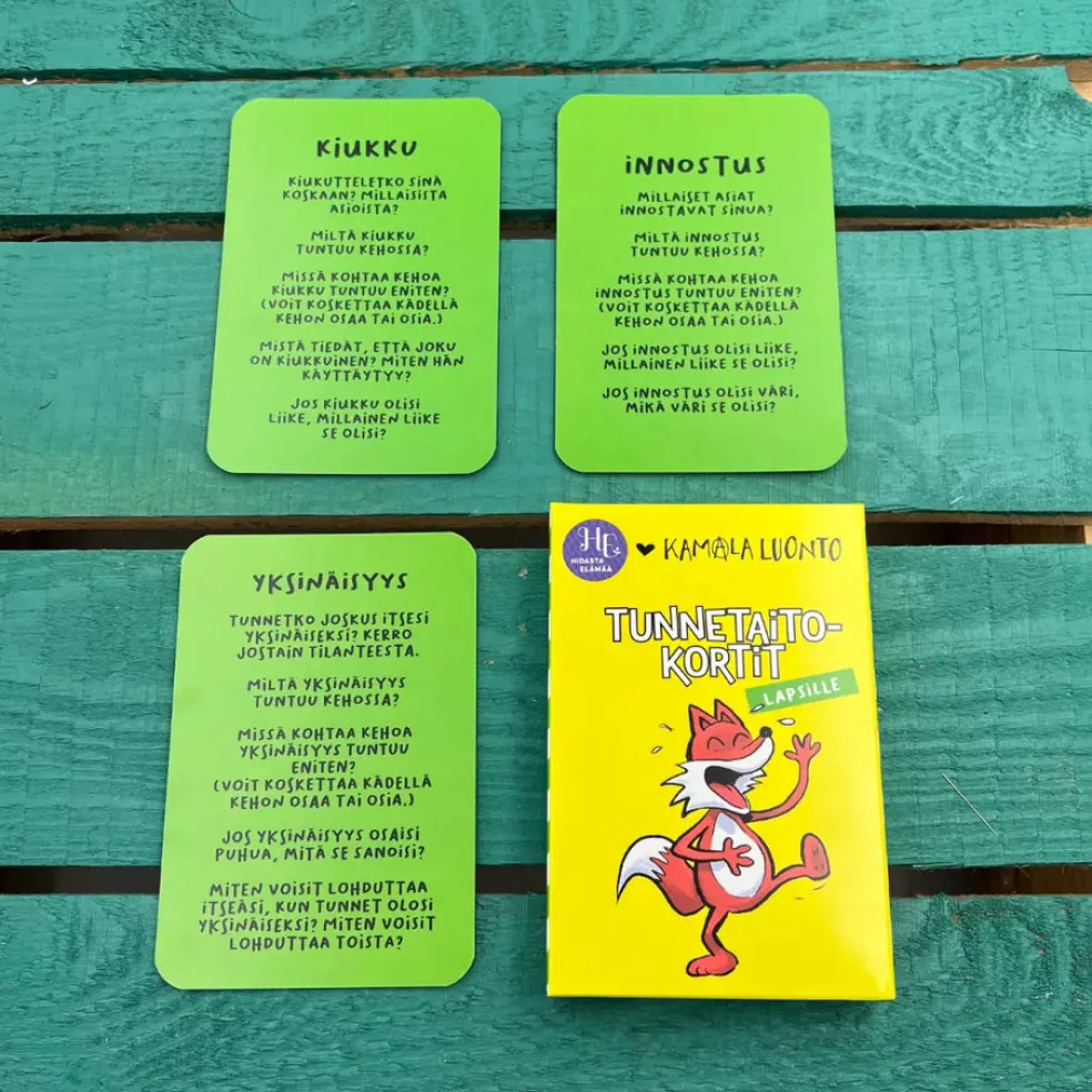 Tunnetaitokortit auttavat lasta tunnistamaan ja nimeämään tunteita. Ikäsuositus 3-12v.