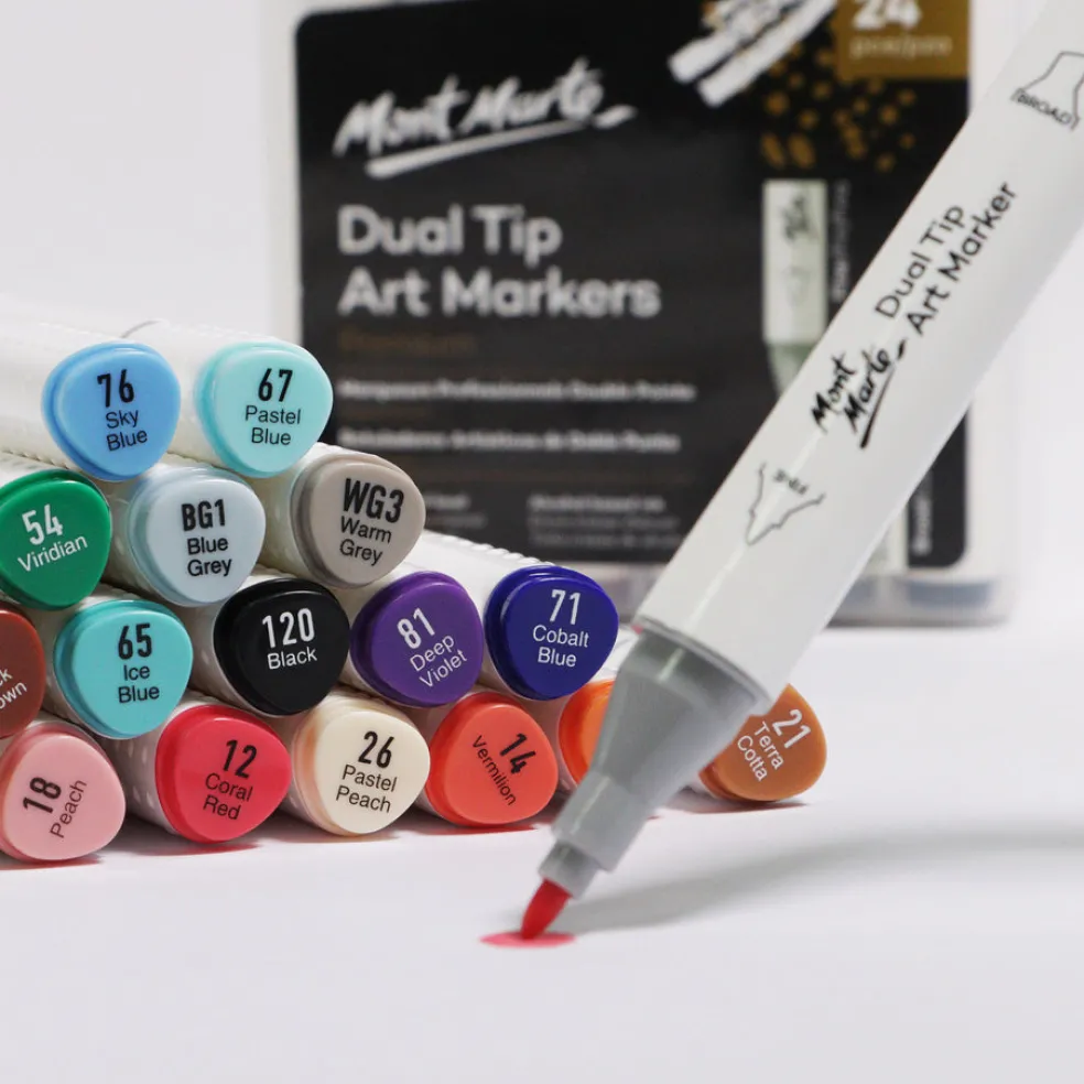 Mont Marte Premium -kaksipäiset tussit tarjoavat luovuudelle rajattomat mahdollisuudet. Setissä on 24 upeaa väriä, ja korkealaatuinen alkoholipohjainen muste soveltuu täydellisesti suunnittelijoille, kuvittajille ja taiteilijoille. Tussit ovat ammattitasoisia ja niissä on kaksi erilaista kärkeä: viistokärki ja ohut kärki. Muste on laadukasta ja kerrostettavissa, jolloin väriin saadaan upeaa syvyyttä. Näillä tussit tarjoavat mahdollisuuden luoda juuri sellaisia taideteoksia kuin mielesi tekee. Olitpa sitten suunnittelemassa, piirtämässä tai maalaamassa, nämä tussit ovat täydellinen valinta tuomaan luovuutesi esiin. Luo omannäköisiä ja eloisia taideteoksia näillä monipuolisilla ja laadukkailla tussikynillä.