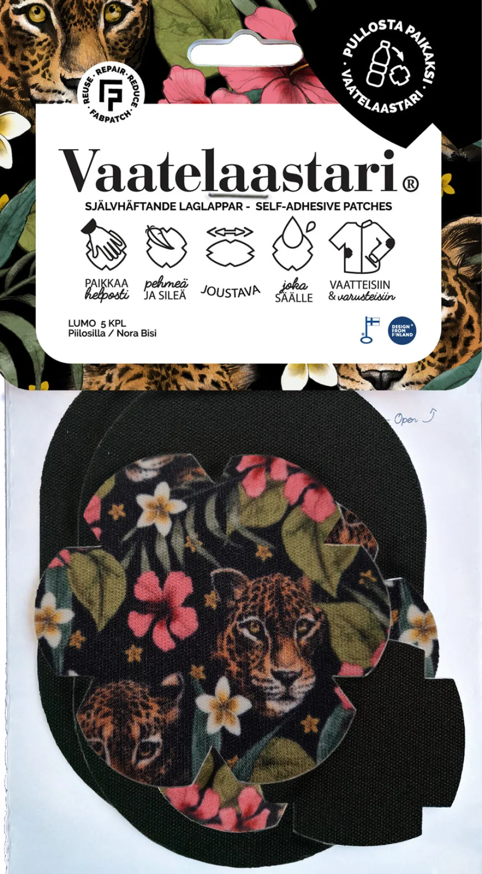 Vaatelaastarit sopivat esimerkiksi toppahousujen, verkkareiden, kenkien, tuolien ja reppujen paikkaamiseen. Tuote soveltuu sekä joustaviin että joustamattomiin tekstiileihin ja myös monille sisävaatteille!