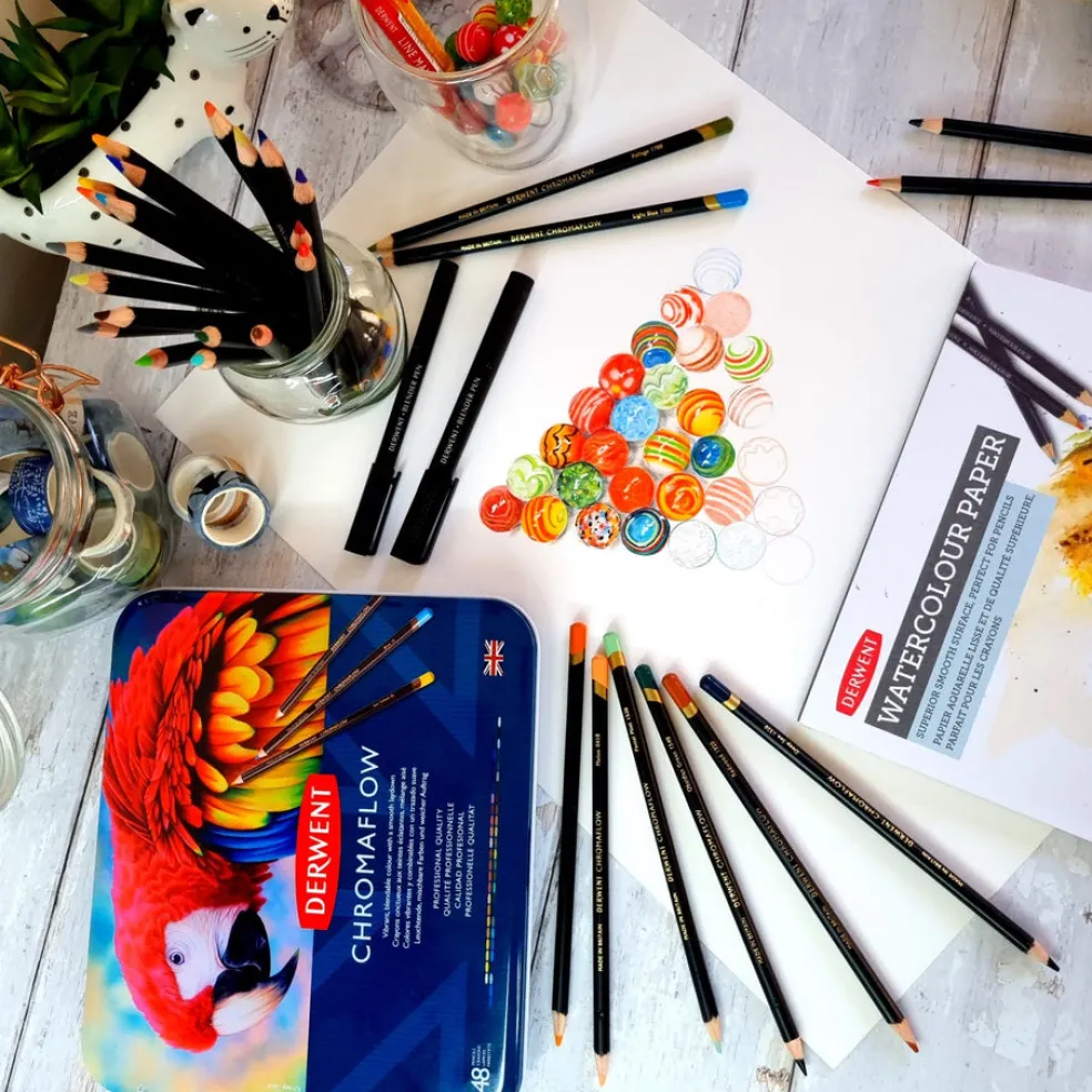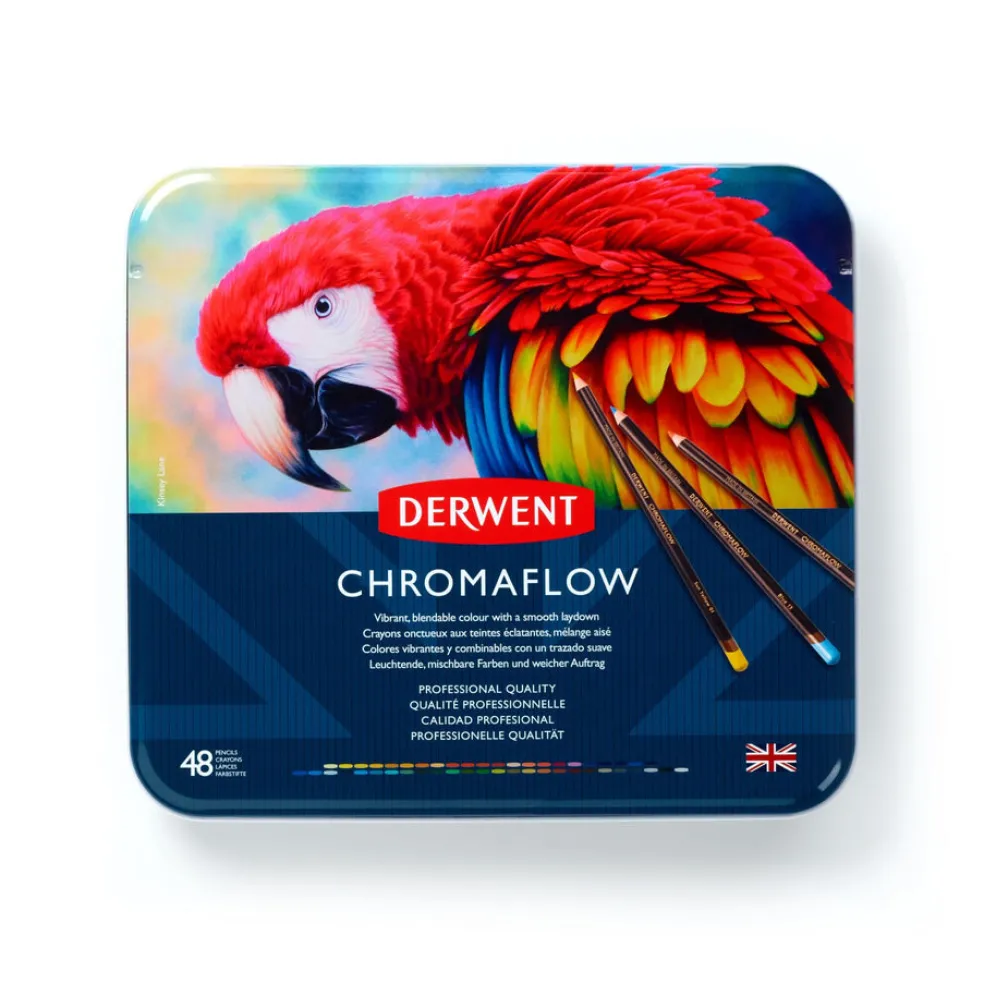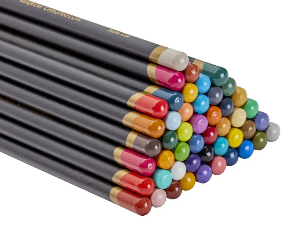 Laadukkaat Chromaflow-värikynät ovat vahvapigmenttiset, vahapohjaiset värikynät, jotka soveltuvat erinomaisesti kaikenlaisiin kynätekniikoihin. Tasaisen samettinen lopputulos ja eloisat värit varmistavat täydellisen lopputuloksen. 3,5 mm paksuinen värilyijy on vahva ja ominaisuudet tulevat esiin erityisesti terävällä kärjellä piirtäessä ja värittäessä. 48 sävyn lajitelma.