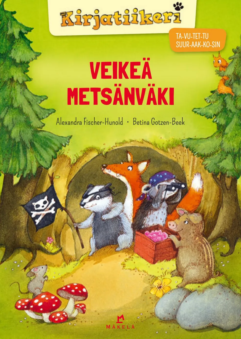 Neljä mukavaa ta-vu-tet-tu-a ja SUURAAKKOSILLA kirjoitettua tarinaa metsän siimeksestä Kirjatiikeri-sarjassa.