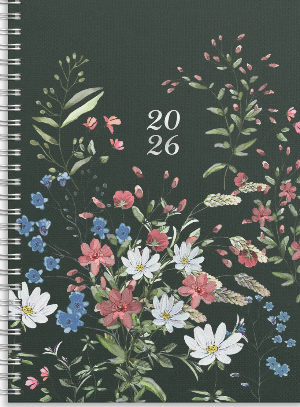Painettu kartonkikansi. Kalenterin aukeamalla yksi viikko, tuntijaotus 08-19, muistiinpanotilaa ja koko vuoden kuukausitaulukot. Kalenteri sisältää nimipäivät, juhlapyhät, liputuspäivät, kuun vaiheet, vuosisuunnitelmat kuluvalle ja seuraavalle vuodelle, kalendaariset tiedot, yleiset pyhäpäivät maailmalla, auringon nousu- ja laskuajat sekä muistiinpanosivut. Kalenteriosa: vk 51 2025-vk 53 2026/2027. Kolmikielinen: suomi/ruotsi/englanti. Parikierresidottu kalenteri. FSC®. Koko: 148×210 mm (A5).