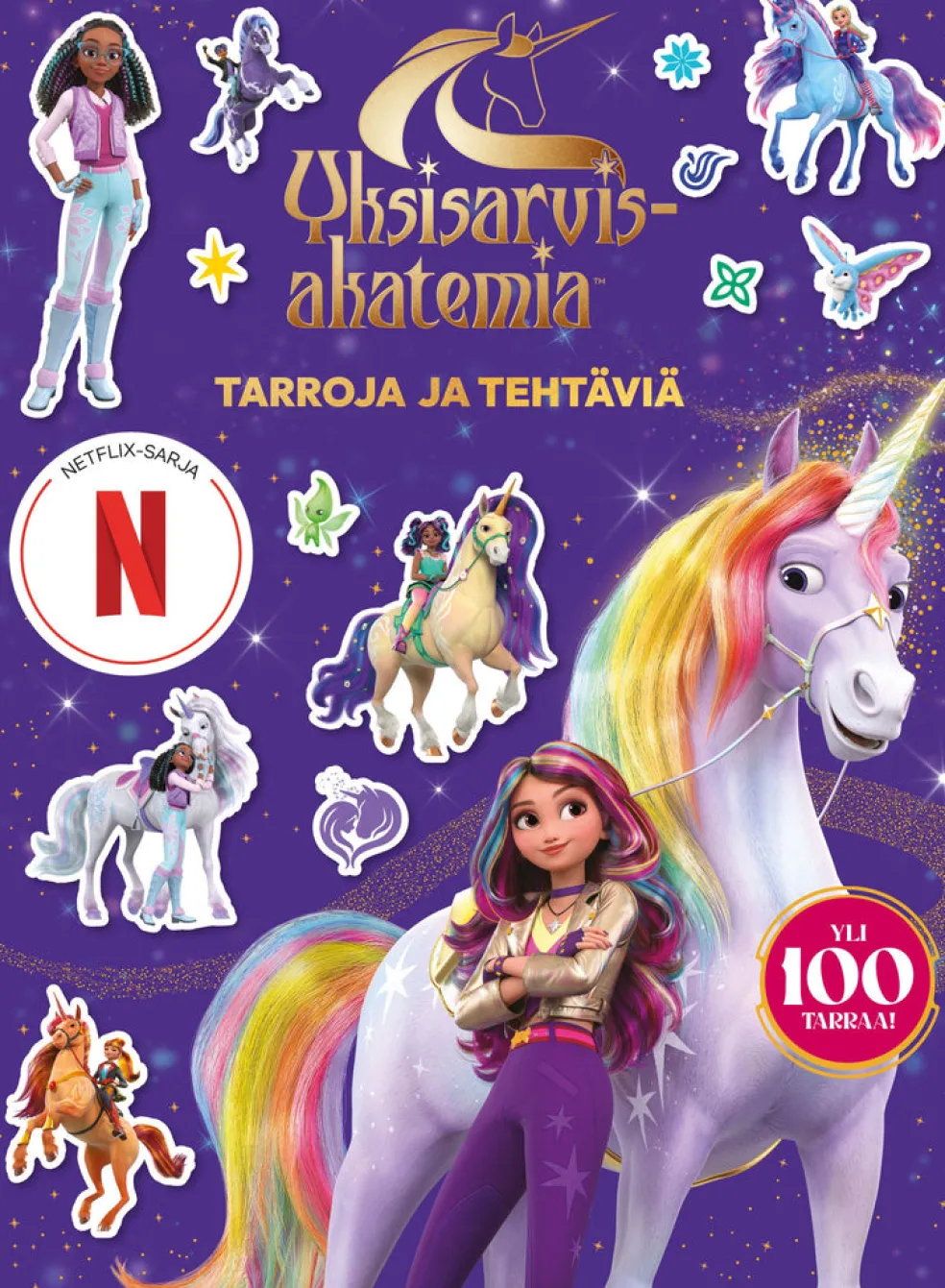Laukkaa sädehtivään Yksisarvisakatemiaan tämän tarra- ja tehtäväkirjan sivuilla. Mukana on yli 100 tarraa, sokkeloita, pelejä, luovia koristelutehtäviä sekä nokkeluushaasteita. Puuhien parissa pääset kulkemaan Netflixistä ja tarinakirjoista tutussa maailmassa. Liity siis Sophian, Villitähden ja ystävien seuraan kaikkien aikojen taianomaisimmalle seikkailulle!